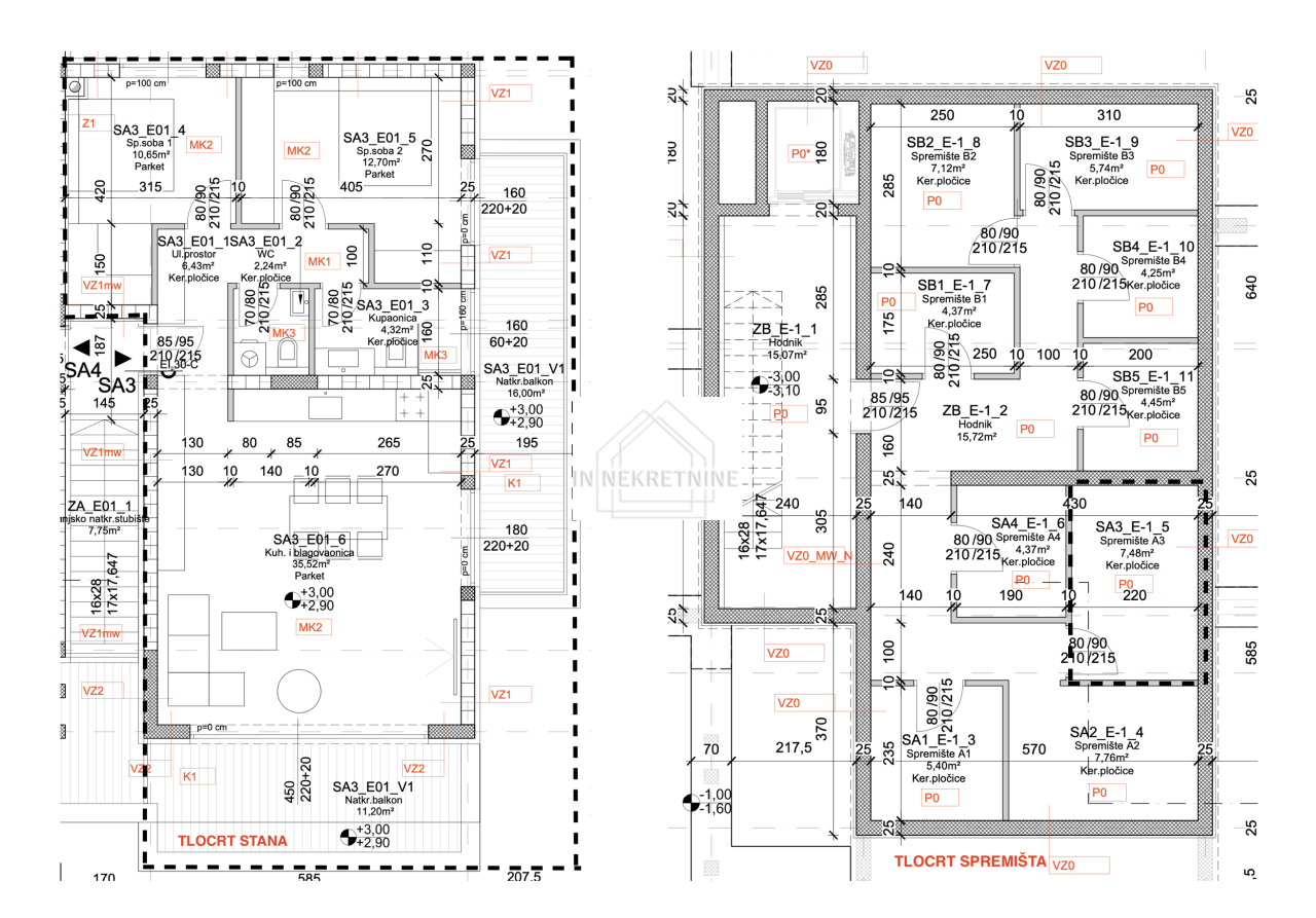 - Dodatni sadržaji: spremište u podrumu zgrade, dva vanjska parkirna mjesta