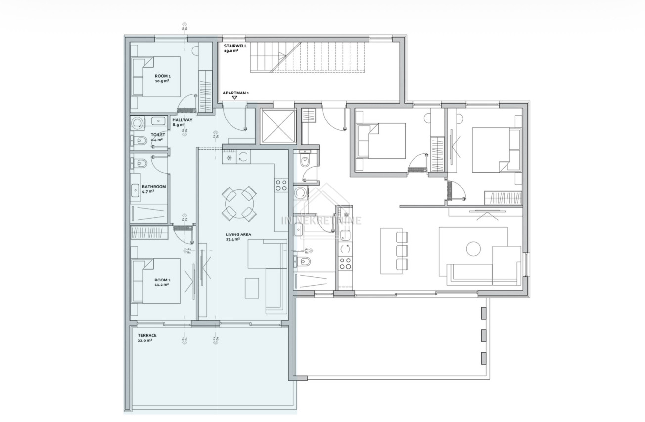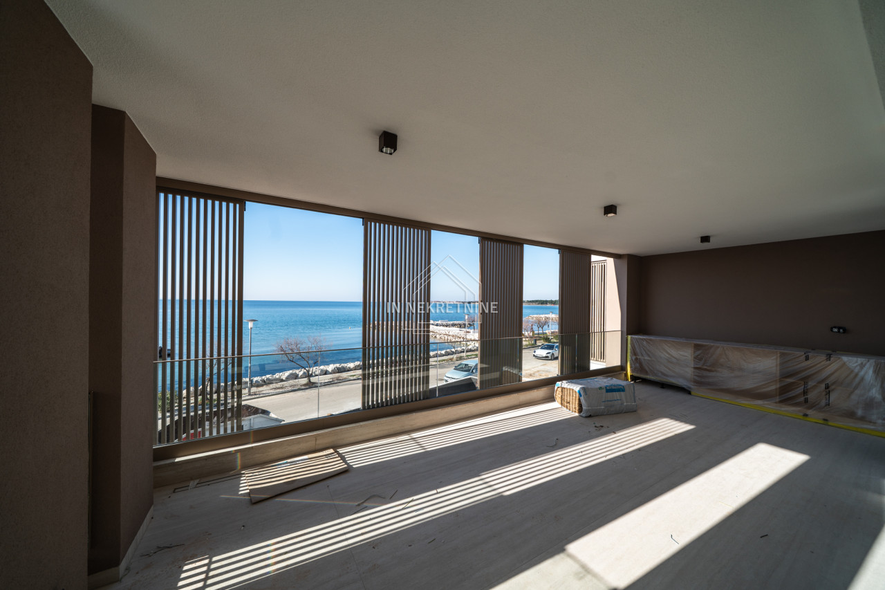 Na ekskluzivnoj lokaciji, u prvom redu do mora u mjestu Zaton pokraj Zadra, prodaje se elegantan stan na prvom katu moderne visokokvalitetne novogradnje. Stan ima podno grijanje na dizalicu topline, te u svakoj prostoriji ima klima uređaj.