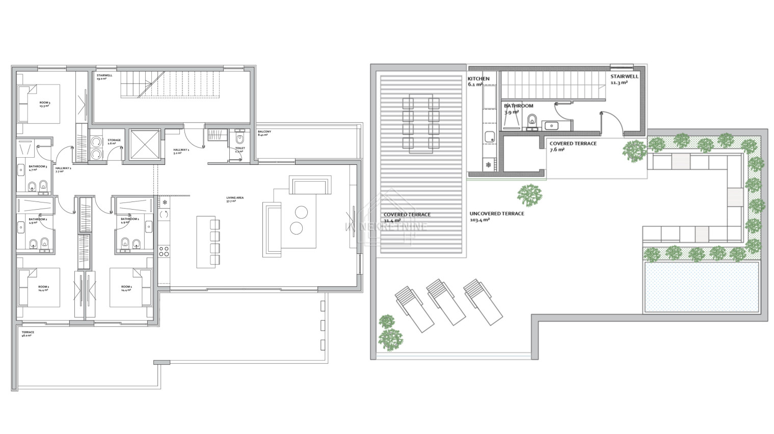 - Ekskluzivna krovna terasa s privatnim bazenom, sunčalištem, ljetnom kuhinjom i WC-om