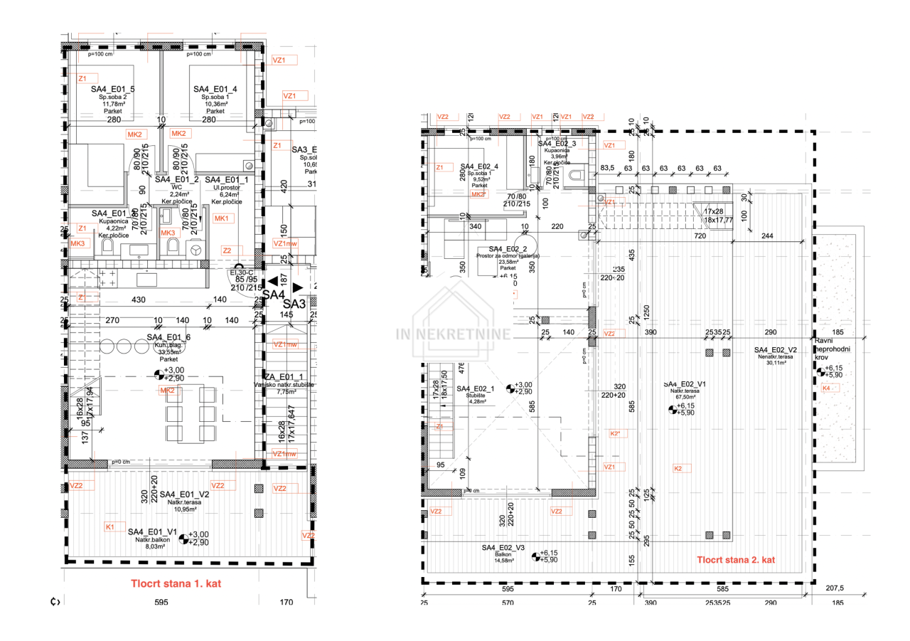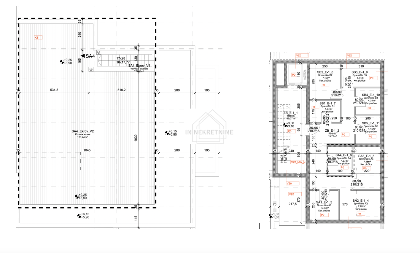 - Krovna terasa: Impresivan prostor za opuštanje i druženje površine 123,49 m², savršen za sunčanje, večere na otvorenom i uživanje u pogledu na more.