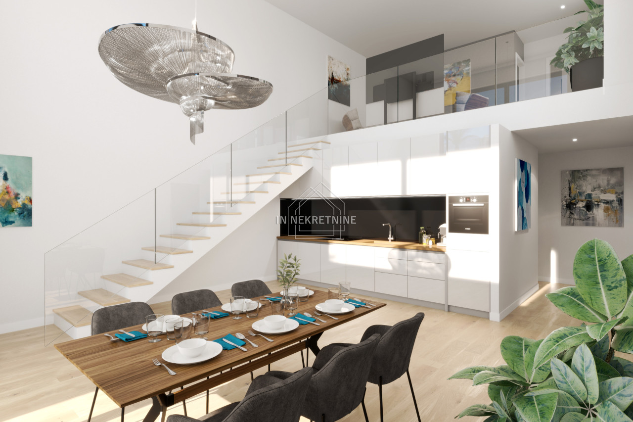 Na prodaju je ekskluzivan troetažan stan SA4 u modernoj novogradnji, smješten u mirnom i atraktivnom mjestu Zaton pokraj Zadra, svega 150 metara od mora i prekrasne pješčane plaže.