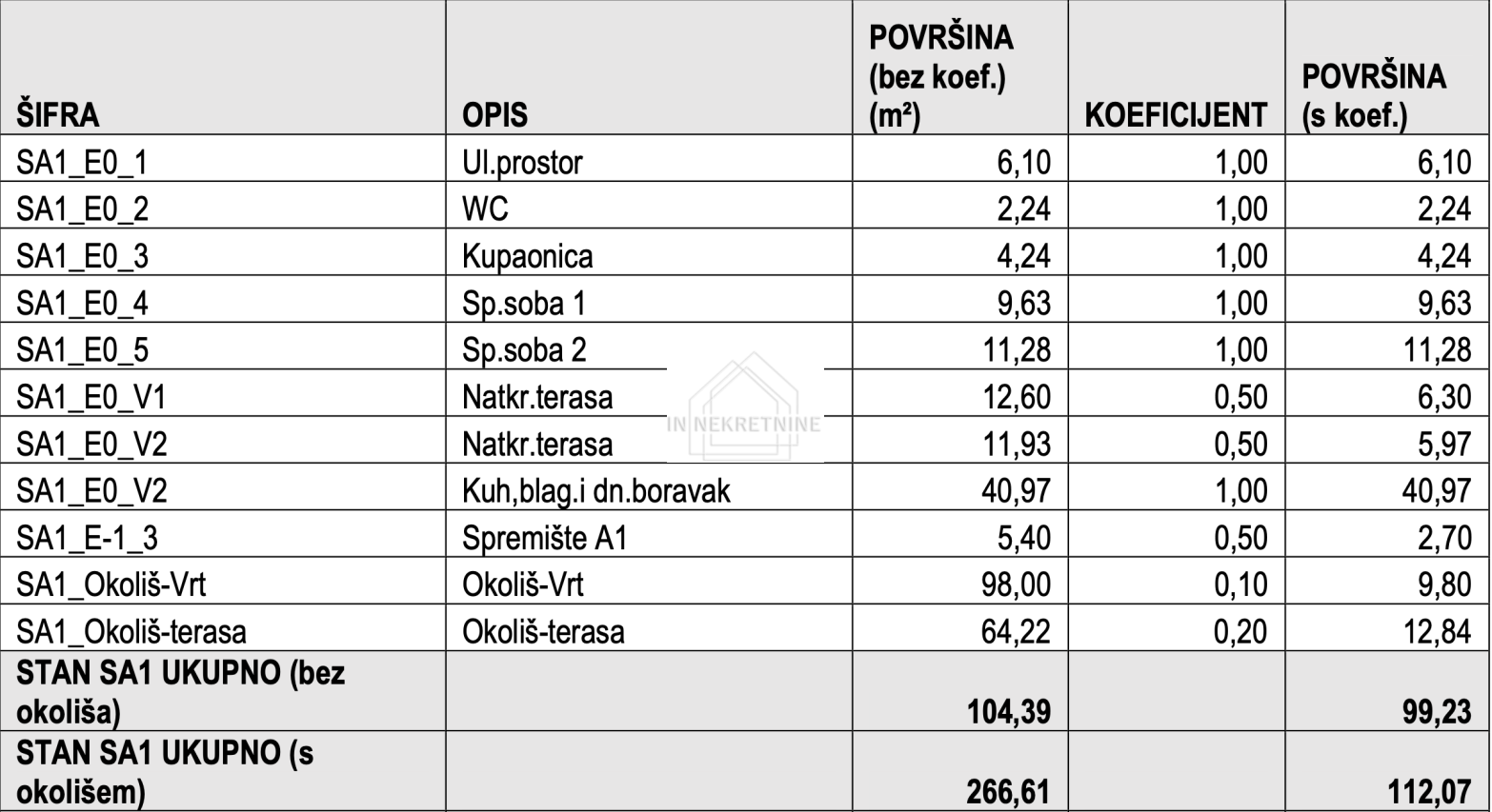 Stan (etažna jedinica Stan SA1) smješten je u prizemlju i sastoji se od: