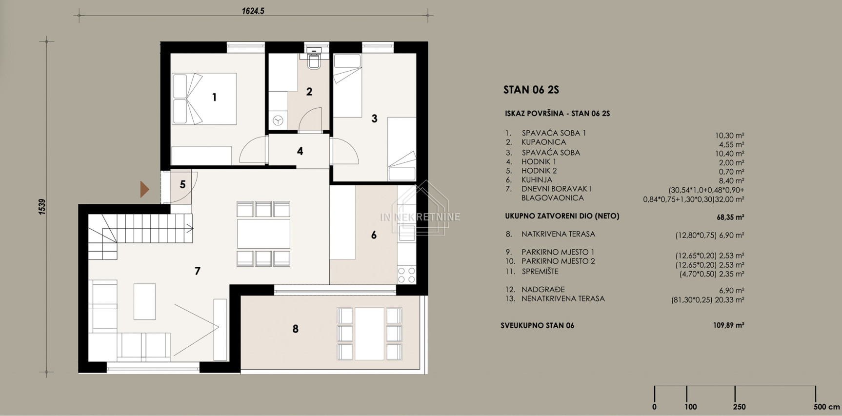 Krovna terasa (81,30 m2): privatna, s mogućnošću uređenja lounge zone