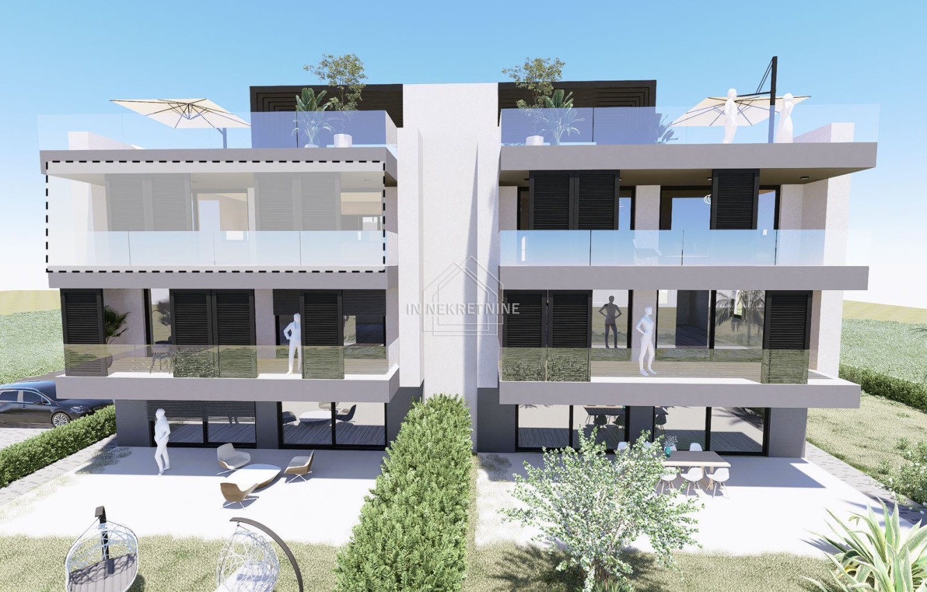 Na prodaju je ekskluzivan penthouse u modernoj novogradnji s ukupno šest stambenih jedinica, smješten u mjestu Sv. Petar na Moru (općina Sv. Filip i Jakov), na mirnoj lokaciji svega 150 metara od mora – samo 5 minuta lagane šetnje do plaže.