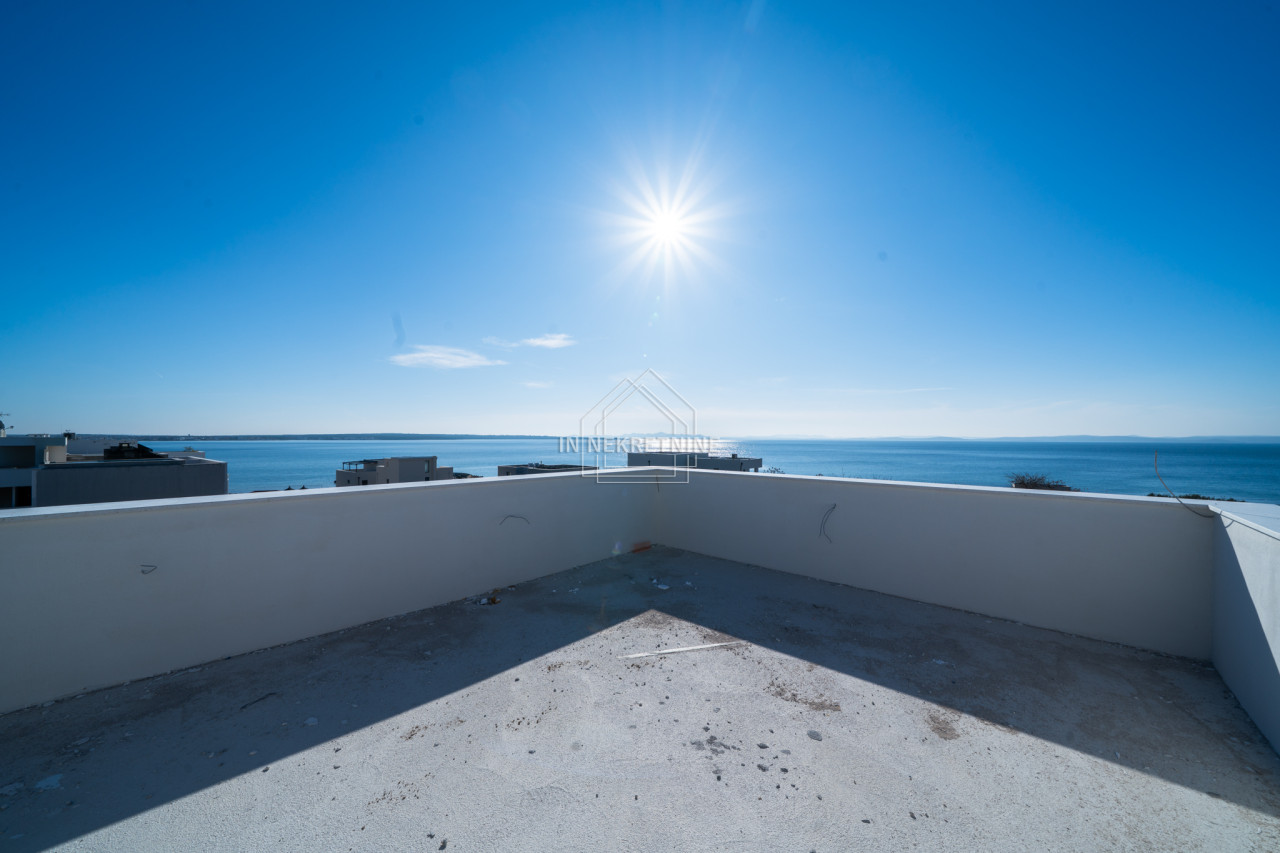 PRIVLAKA – NOVOGRADNJA! Luksuzni trosobni penthouse s pogledom na more, 100 m od plaže