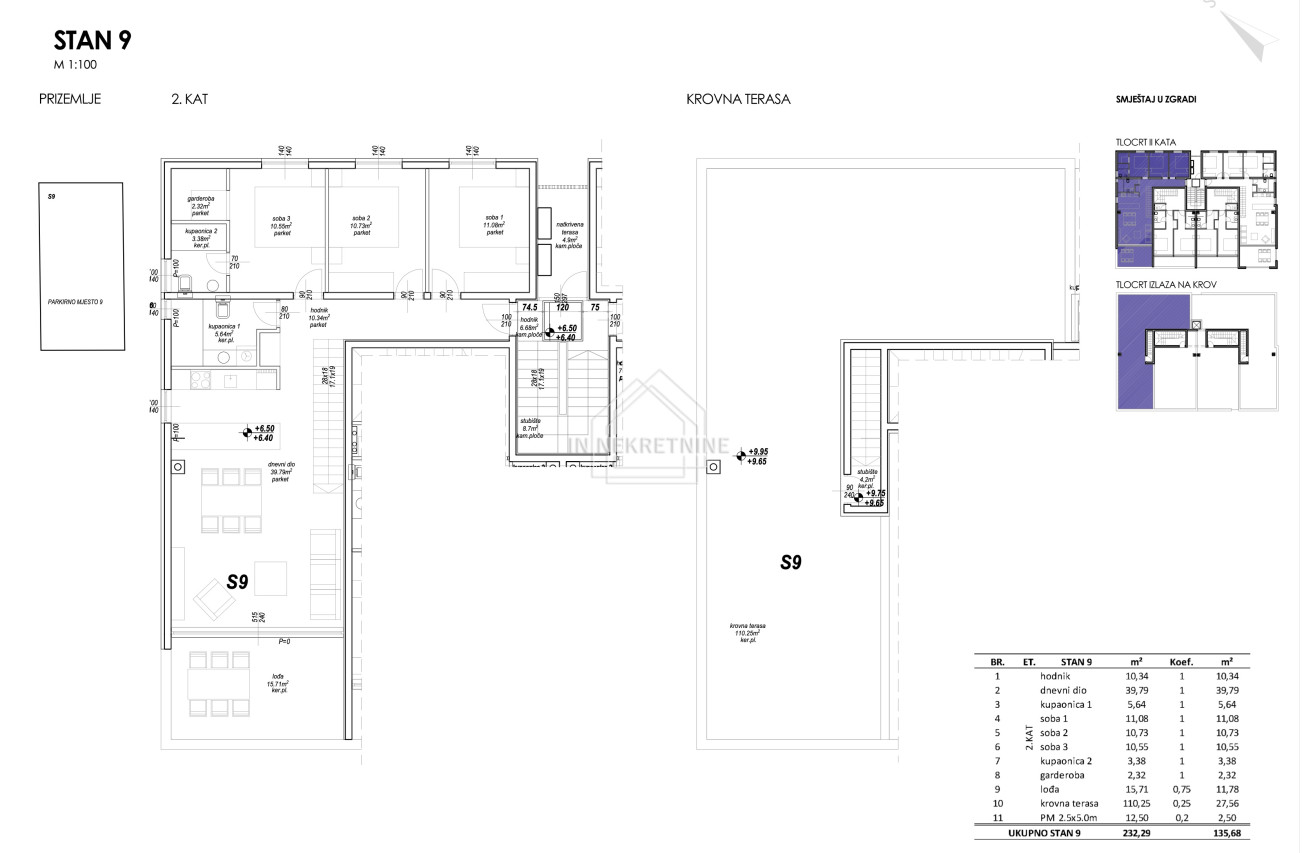 Ukupna površina s pripadcima: 232,29 m²