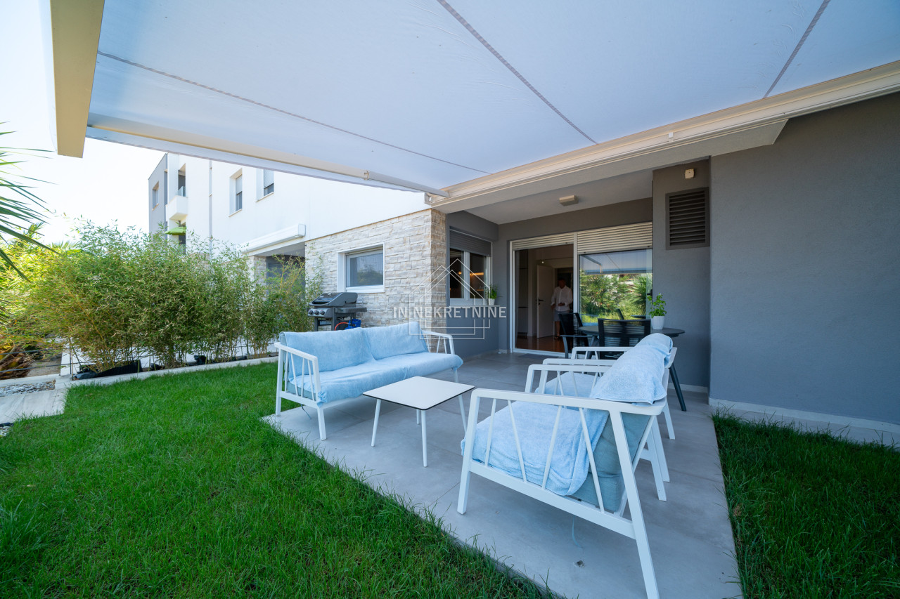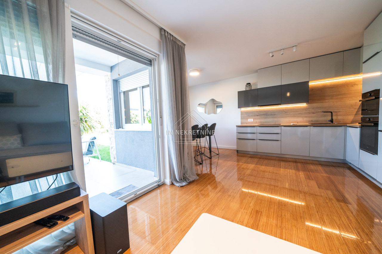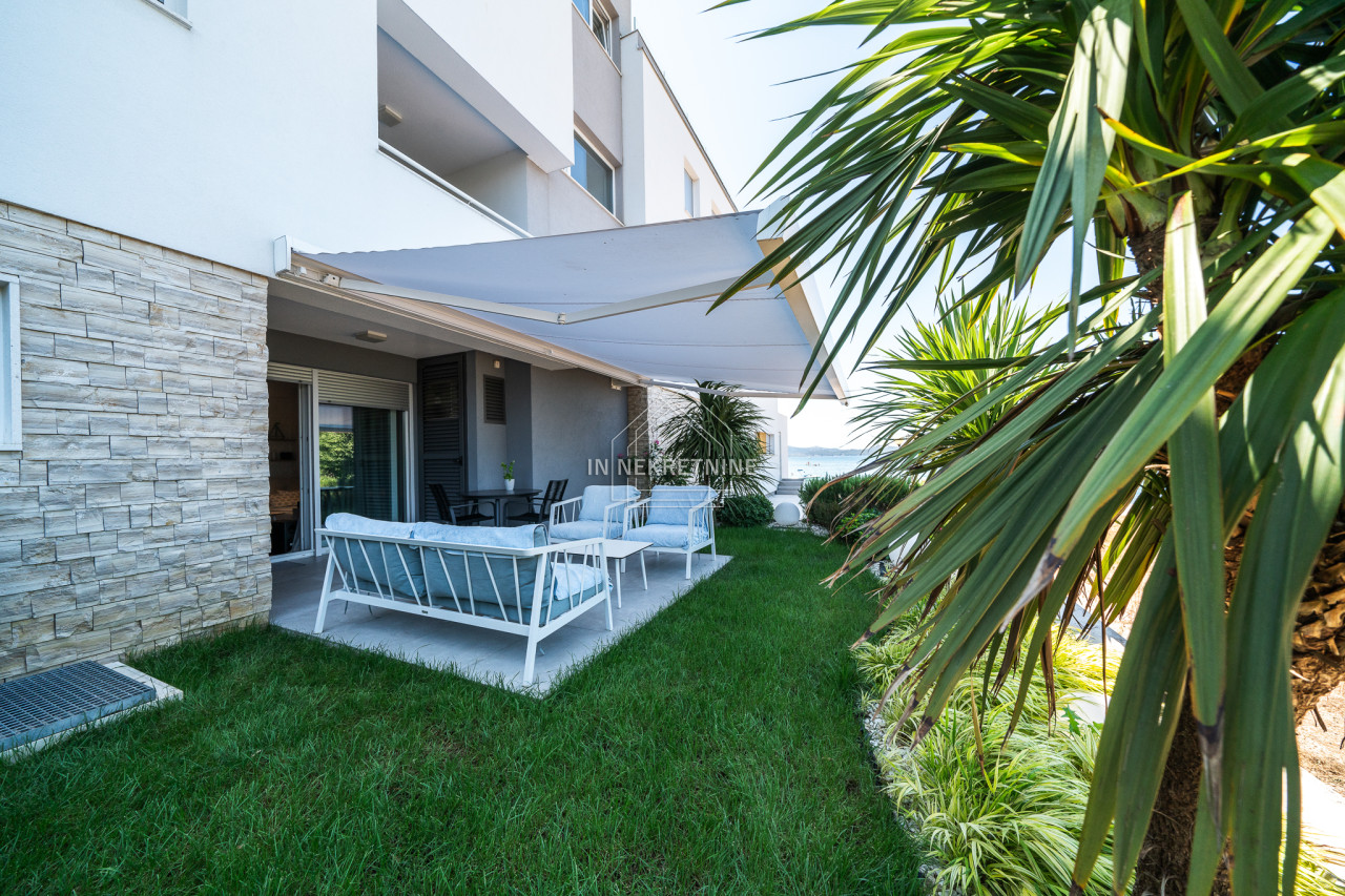 PRVI RED DO MORA - Moderan stan u prizemlju s vrtom i pogledom na more