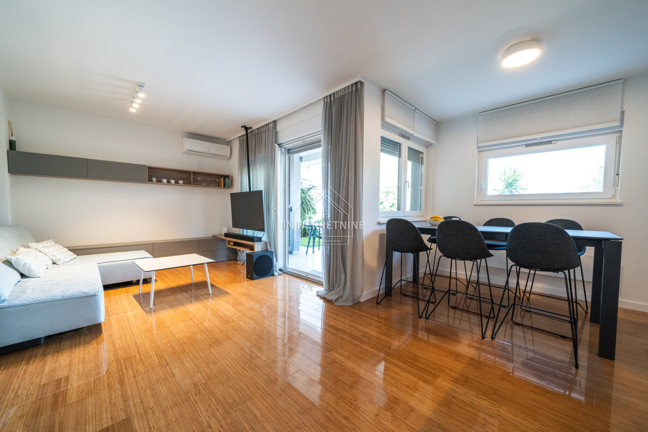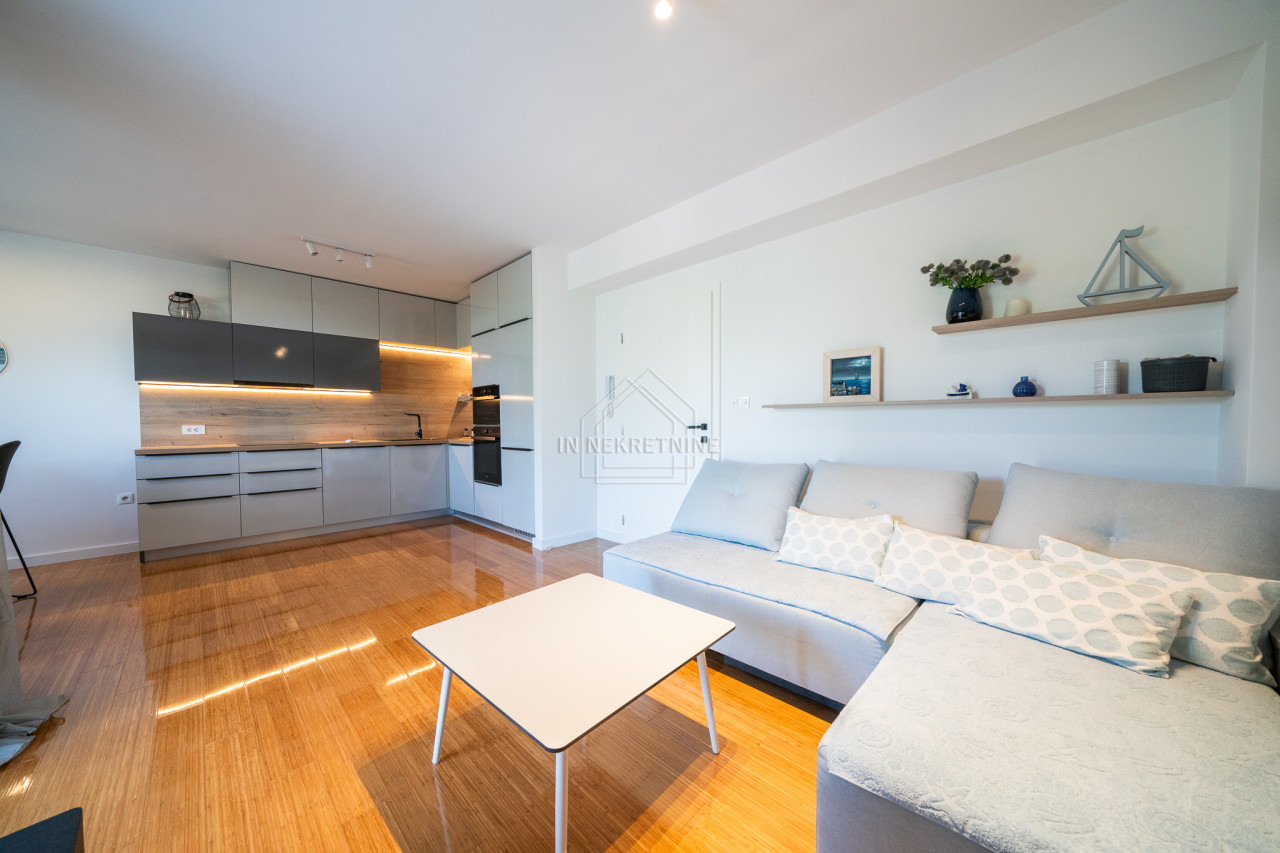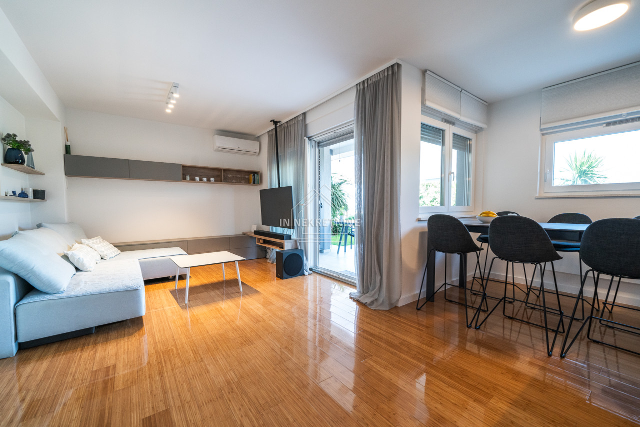 PRVI RED DO MORA - Moderan stan u prizemlju s vrtom i pogledom na more