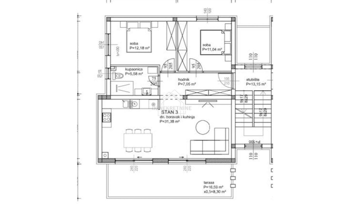 - Open-space kuhinje, blagovaonice i dnevnog boravka