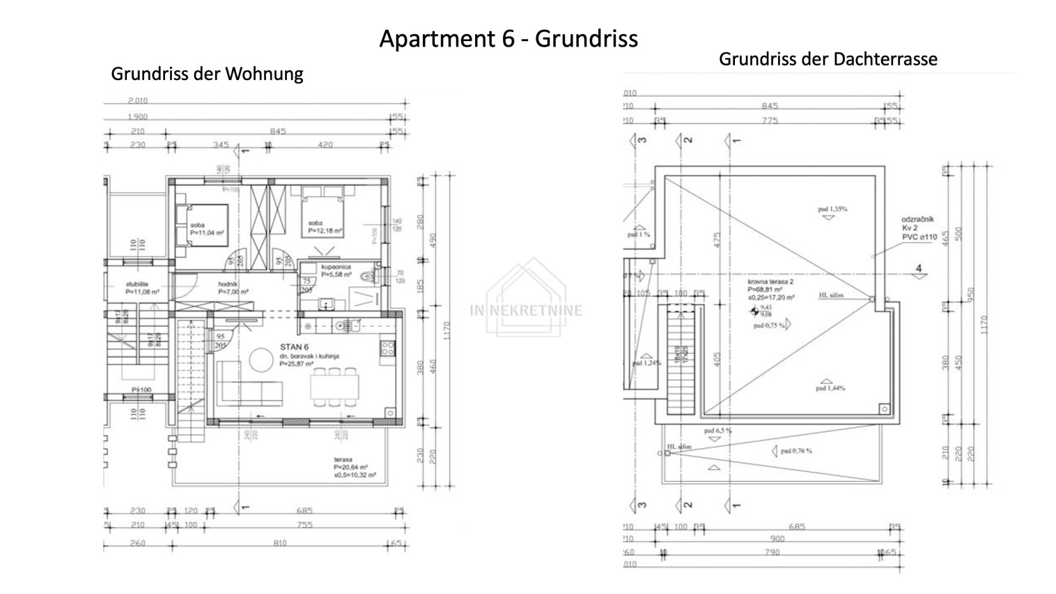 Krovna terasa (68,81 m²) – privatna, s direktnim pristupom iz stana