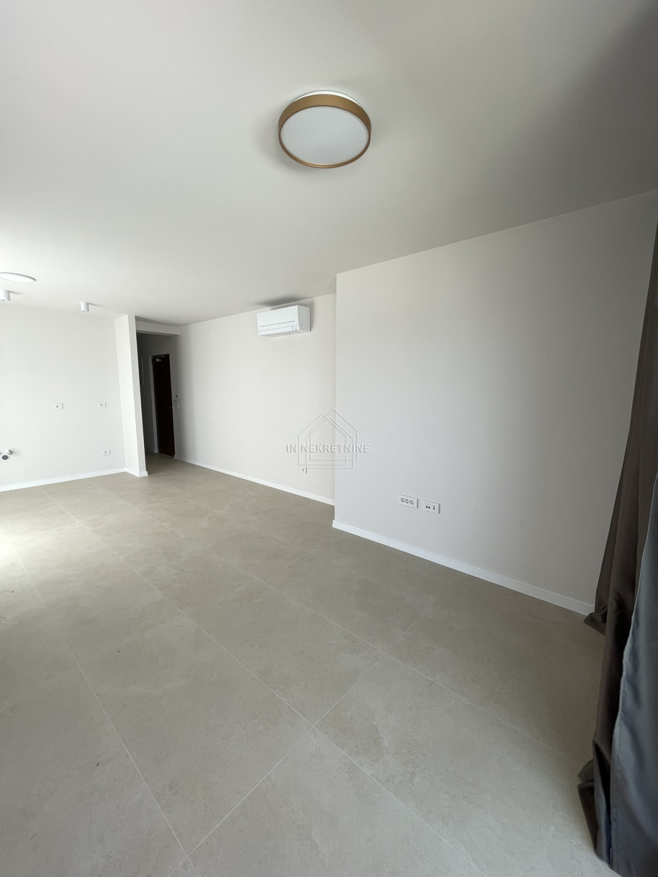 Apartman se sastoji od hodnika, kuhinje, blagovaonice i dnevnog boravka (open space), kupaonice, dvije spavaće sobe (jedna od njih ima vlastitu kupaonicu) i natkrivene terase (7,43 m2.
