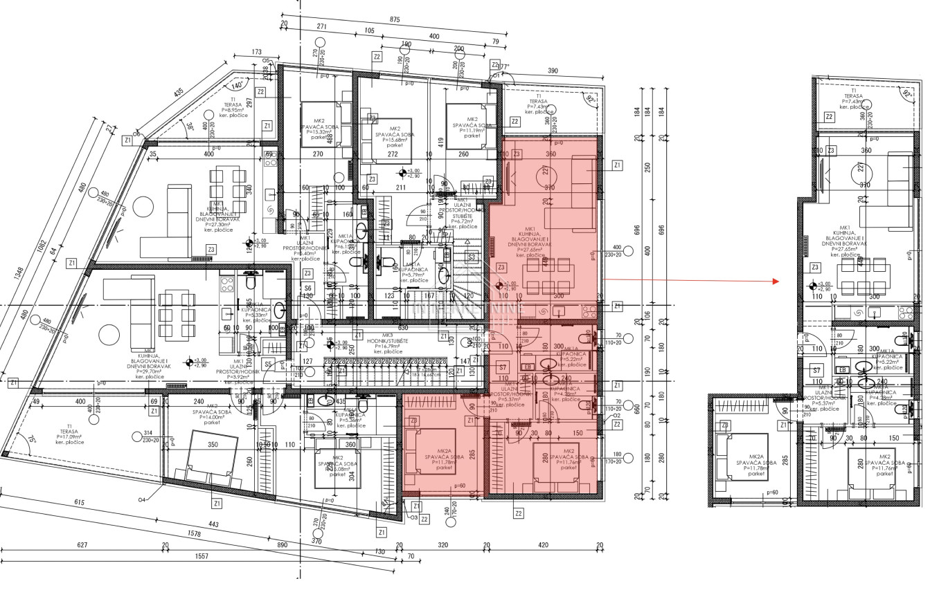 Brutto površina stana i pripadaka iznosi 86 m² dok je netto prodajna površina: 74,14 m².