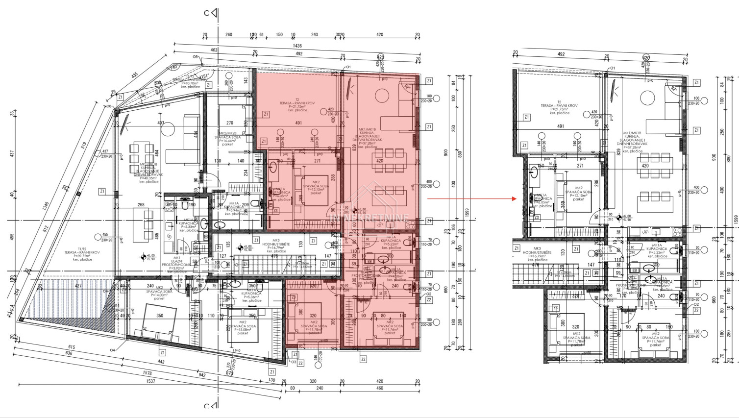 Brutto površina stana i pripadaka iznosi 128,14 m² dok je netto prodajna površina: 112,70 m².