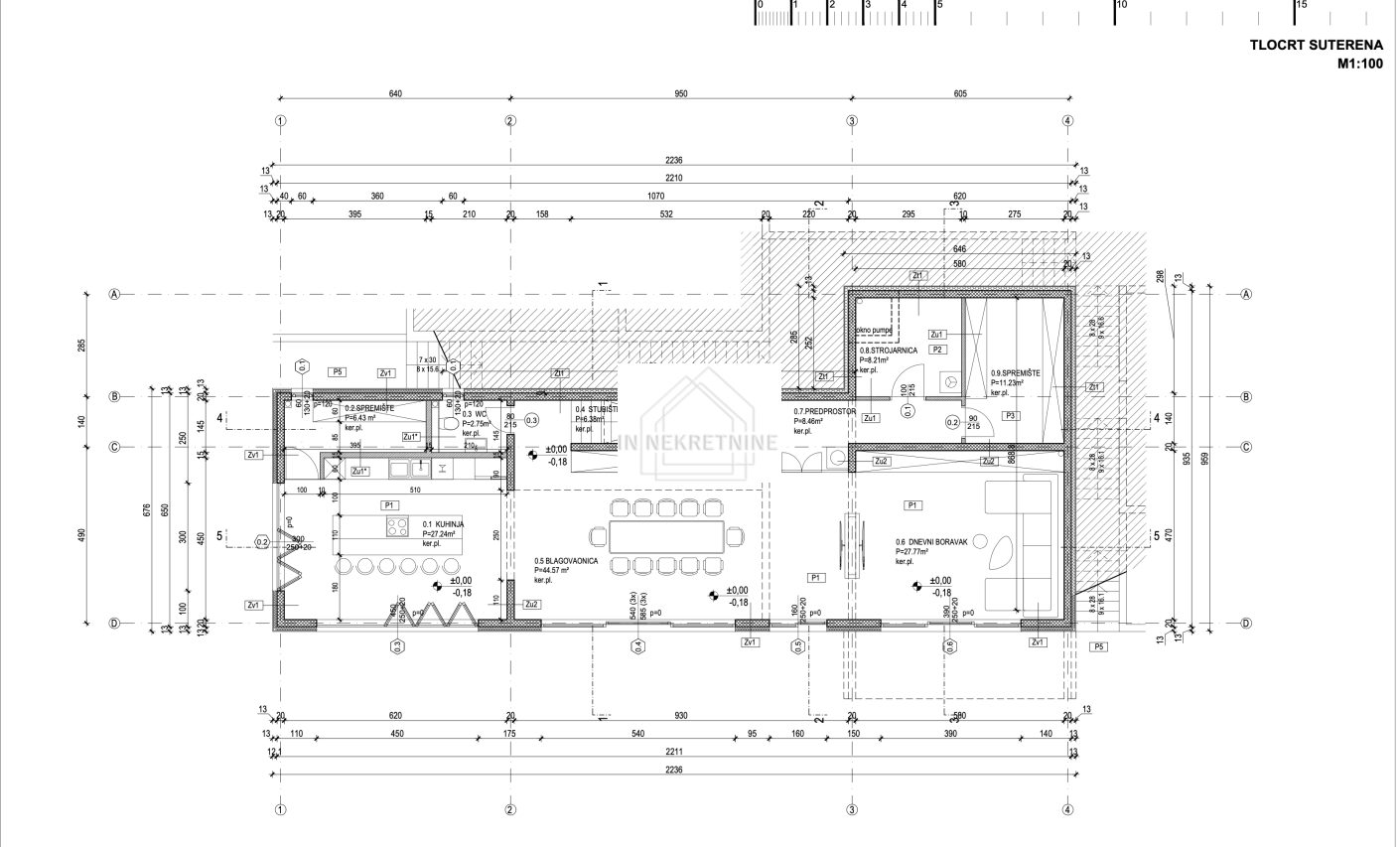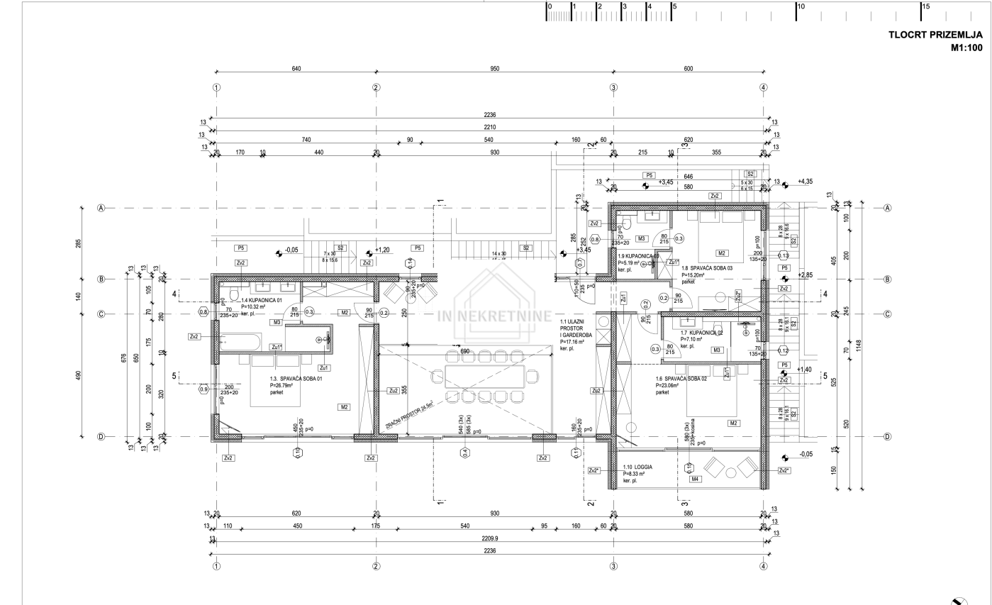 Arhitektonski vrhunac predstavlja impresivni atrij s približno 7 metara visine stropa, koji dnevnom prostoru daje izniman osjećaj prostranosti i ekskluzivnosti.
