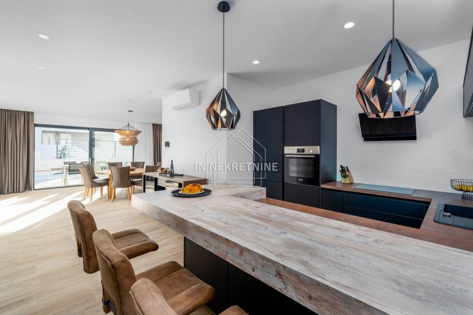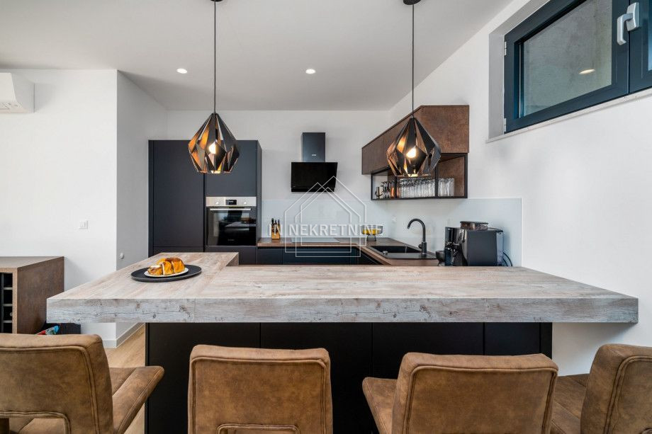 Ova moderna vila oduševljava prostranim rasporedom prostorija, vrhunskom opremom i snažnim investicijskim potencijalom. Kuća je dovršena 2021. godine, u potpunosti je namještena i potpuno opremljena. Trenutno se uspješno koristi u turističkom najmu.