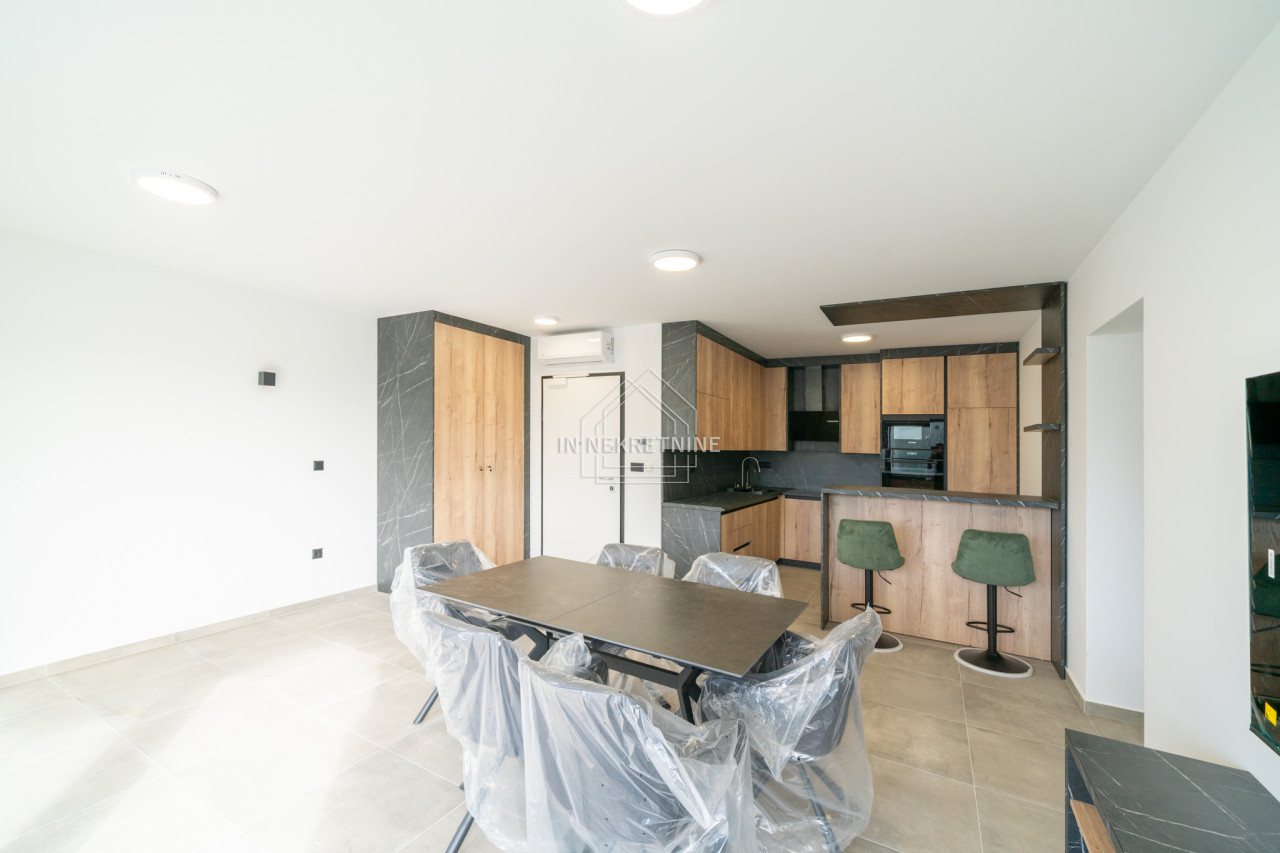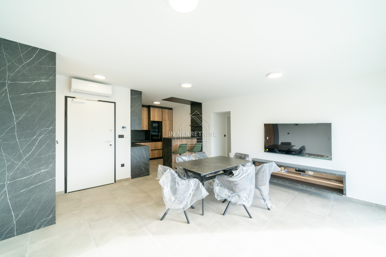 Prodaje se potpuno namješten i opremljen svom bijelom tehnikom, uključujući perilicu rublja, kuhinjske uređaje i televizore. Opremljen je keramičkim podnim oblogama, podnim grijanjem u svim prostorijama te klima uređajem u svakoj sobi, što osigurava ugodan boravak tijekom cijele godine.