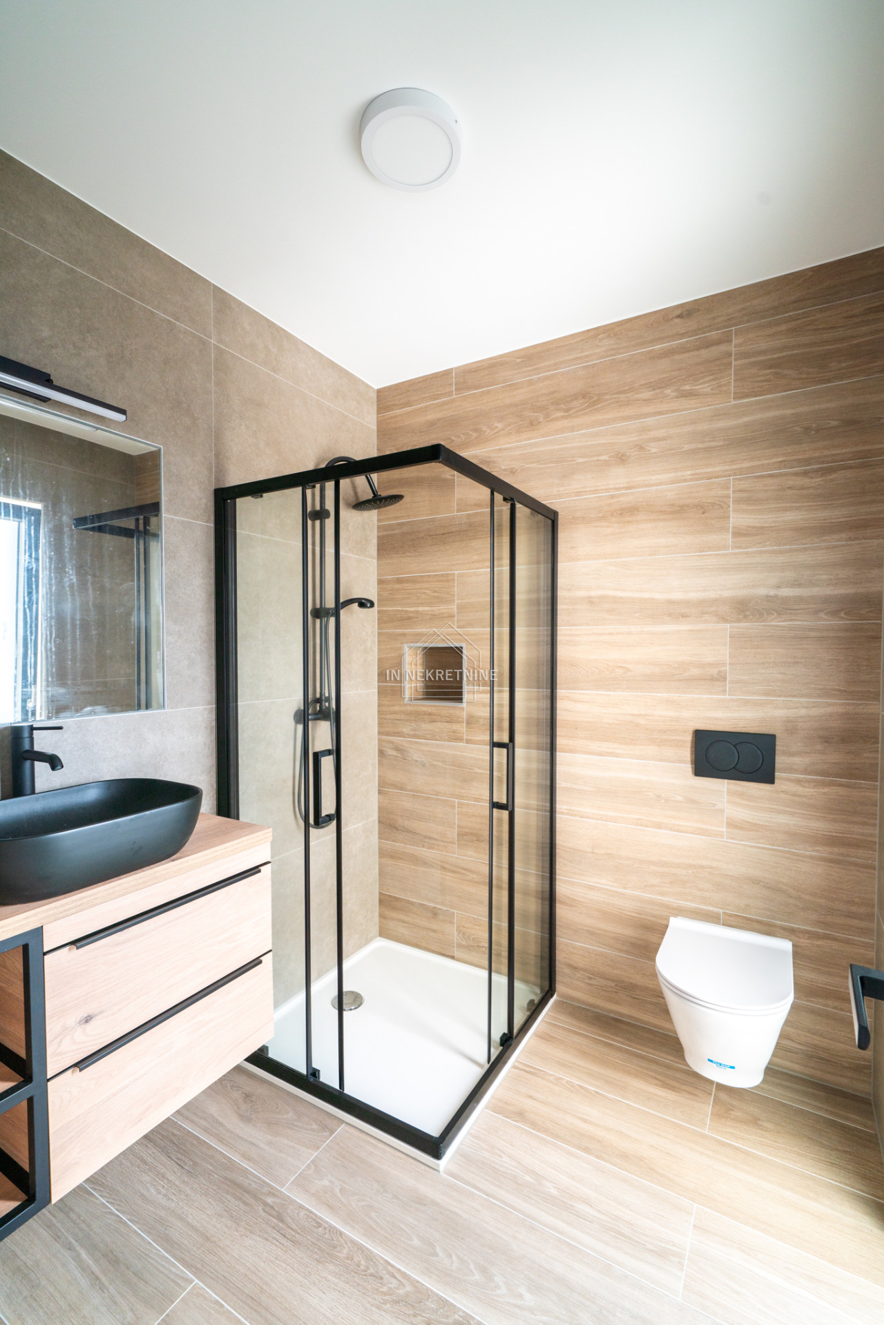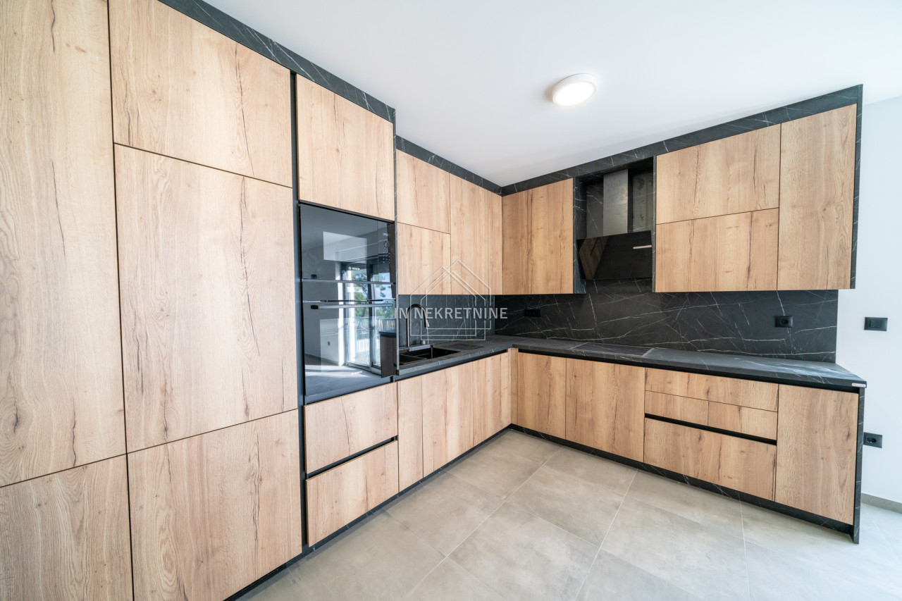 Prodaje se potpuno namješten i opremljen svom bijelom tehnikom, uključujući perilicu rublja, kuhinjske uređaje i televizore. Opremljen je keramičkim podnim oblogama, podnim grijanjem u svim prostorijama te klima uređajem u svakoj sobi, što osigurava ugodan boravak tijekom cijele godine.