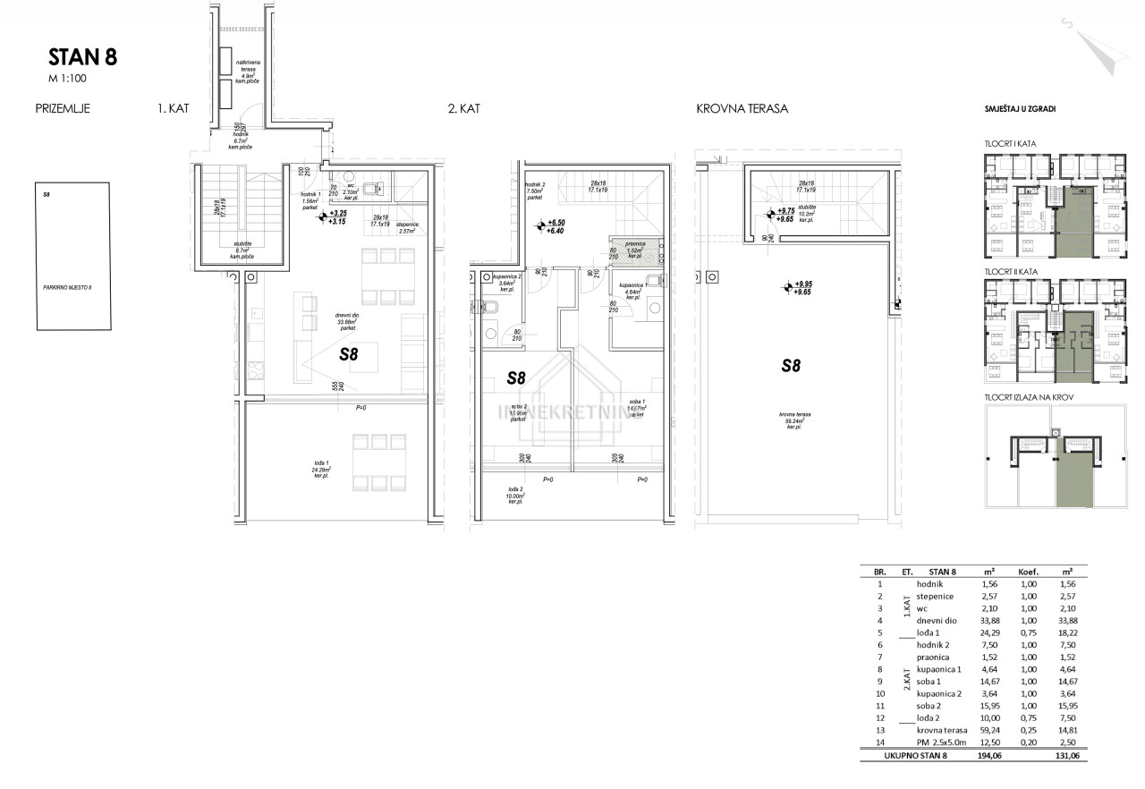 Ukupna površina sa svim pripadcima iznosi 194,06 m².