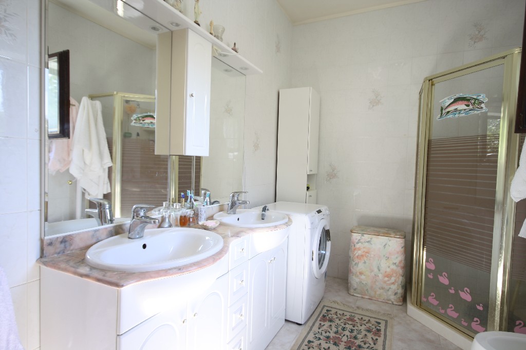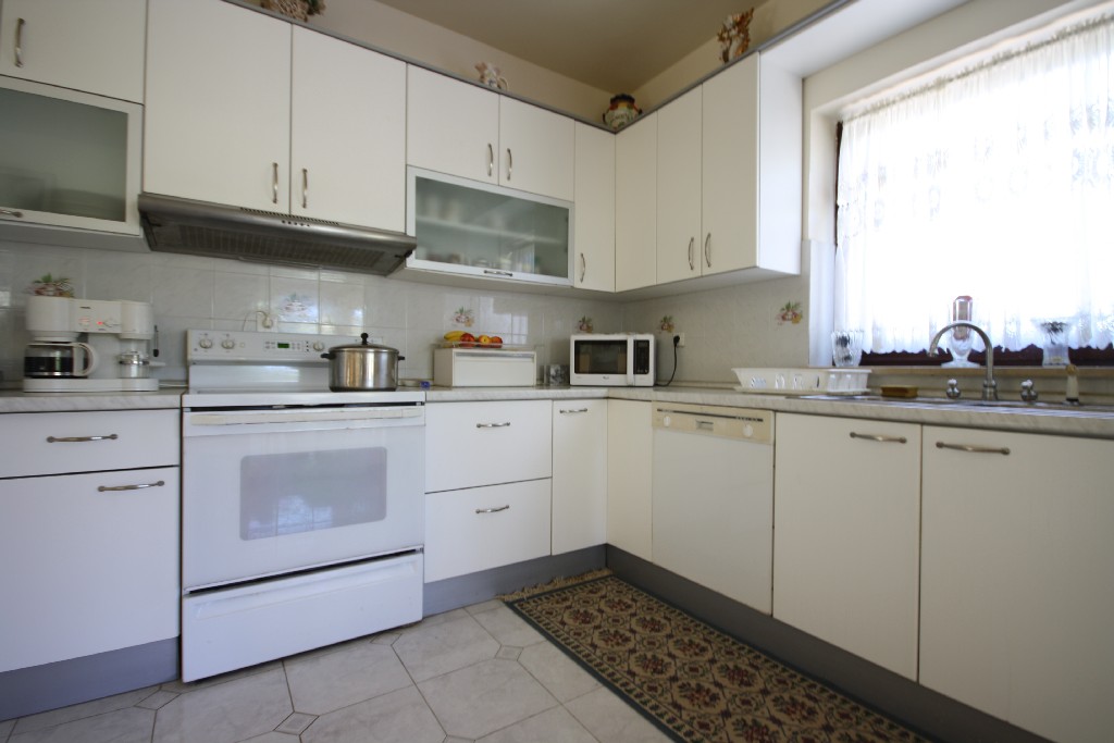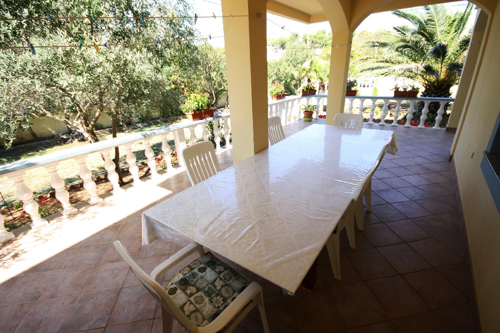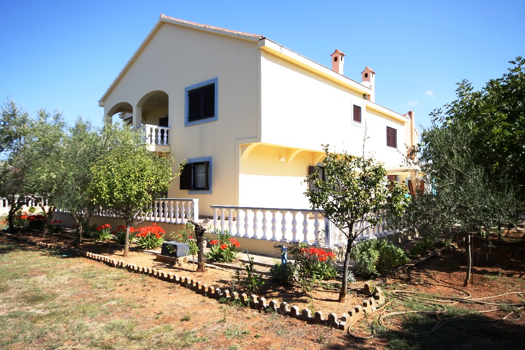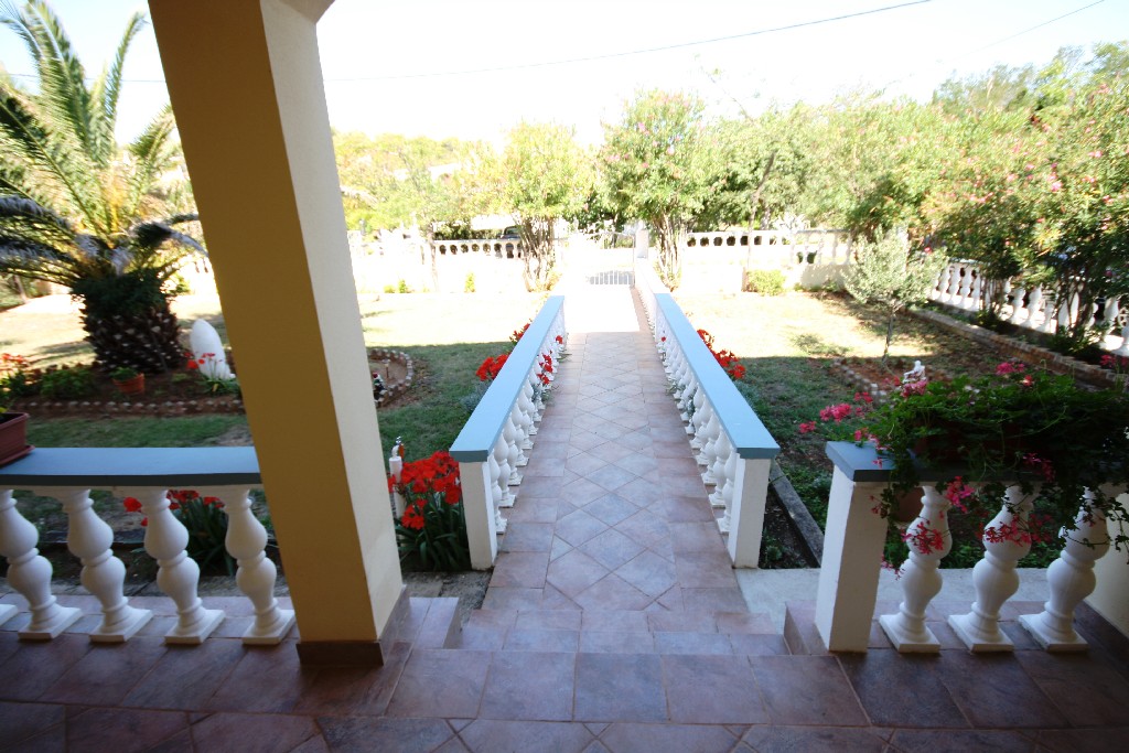 U prizemlju se nalaze kuhinja, blagovaona, dnevni boravak, kupaona , garaža i terasa, a na katu se nalaze 4 spavaće sobe, kupaonica i terasa. Kuća ima veliku okućnicu površine 1500 m2 koja je ukrašena mediteranskim biljem i voćkama.