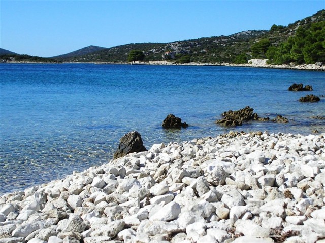 Građevinsko zemljište površine 1758 m2, u mjestu Banj na otoku Pašmanu, prvi red do mora. Cijena građevinskog zemljišta je 220 Eur/m2.