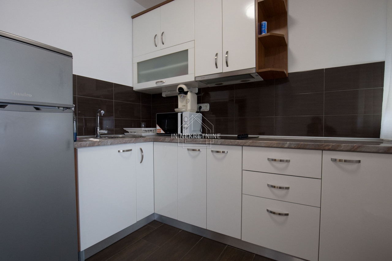Kuća se nalazi na odličnoj lokaciji, samo 150 metara od mora i prekrasne plaže, te u blizini svih potrebnih sadržaja – trgovina, restorana i ostalih urbanih pogodnosti.