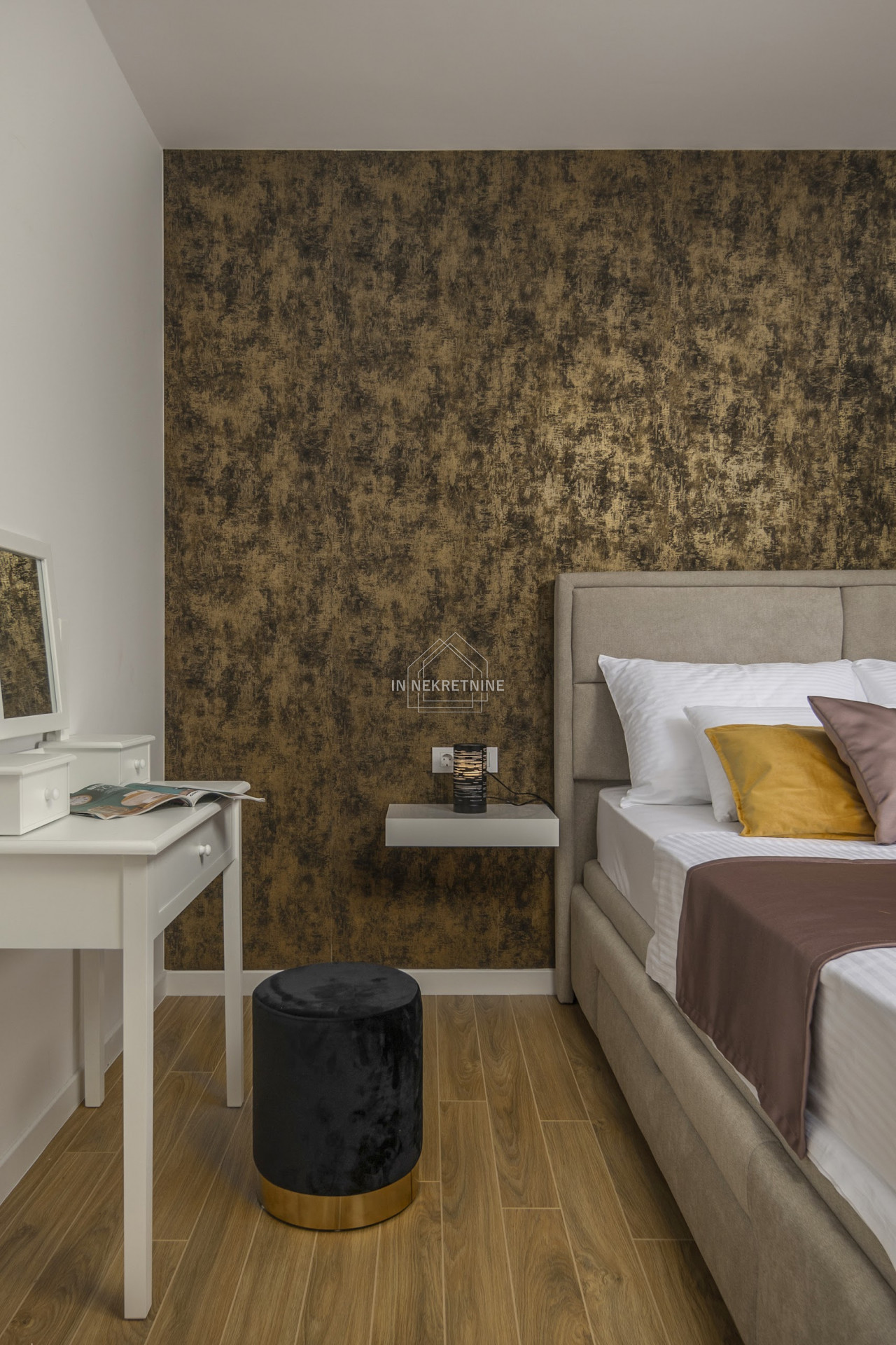 - Prvi kat: Tri spavaće sobe, svaka s vlastitom kupaonicom i terasom, garderoba, praonica i tehnička prostorija. Stepenište vodi na veliku krovnu terasu.