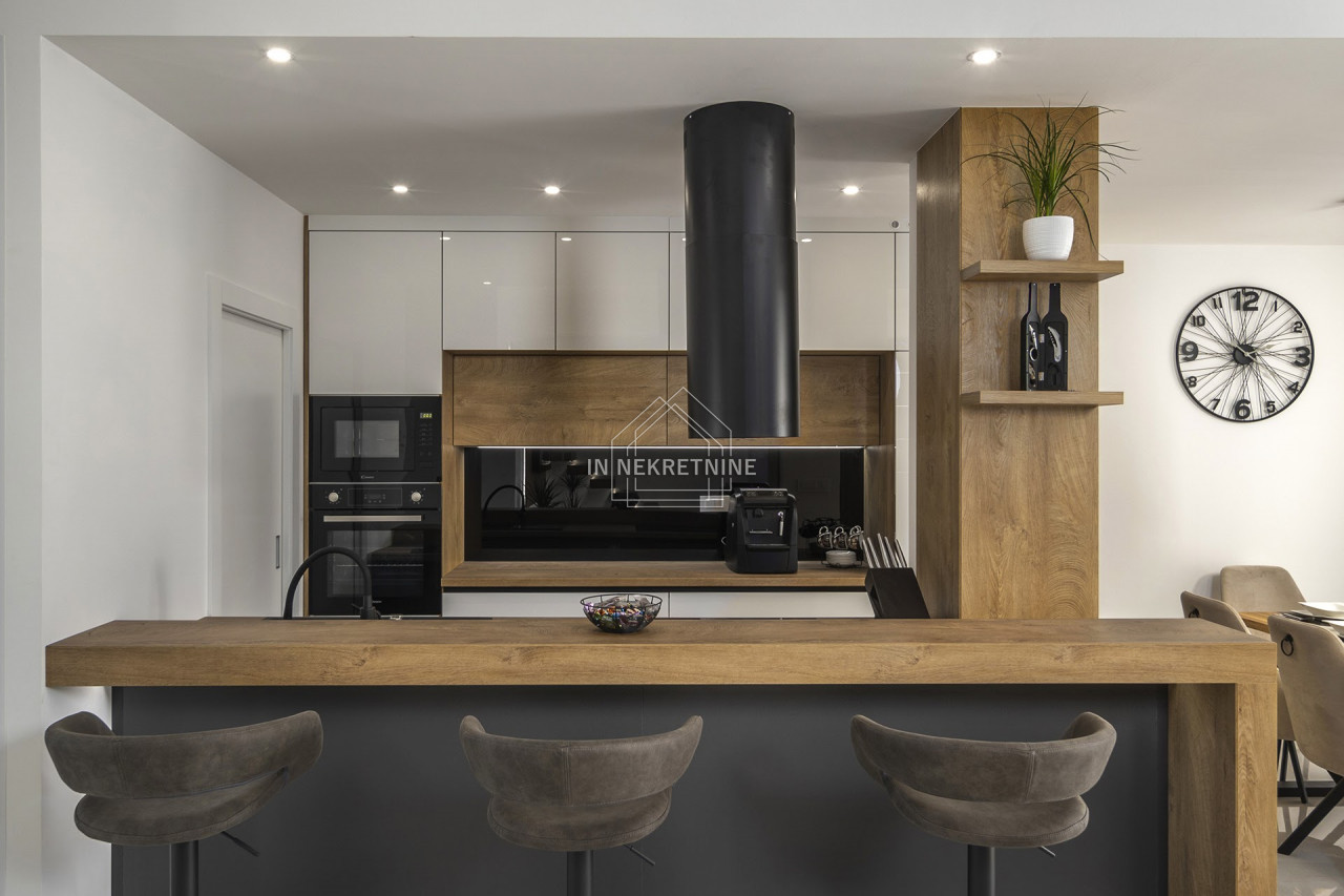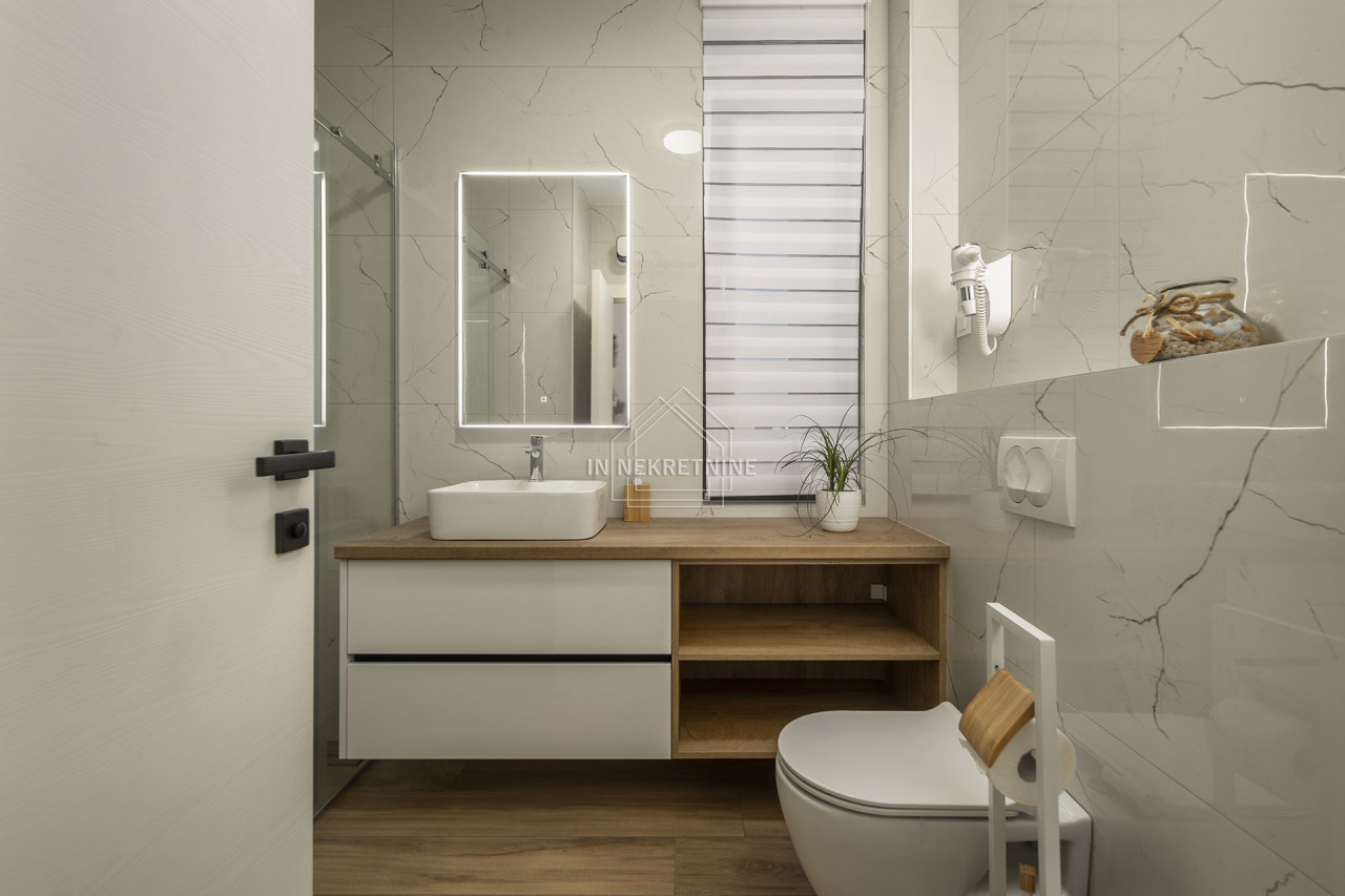 - Prizemlje: Prostrana kuhinja, blagovaonica, dnevni boravak, fitness studio, wellness zona te ljetna kuhinja s roštiljem, idealna za opuštanje i uživanje u ljetnim danima.