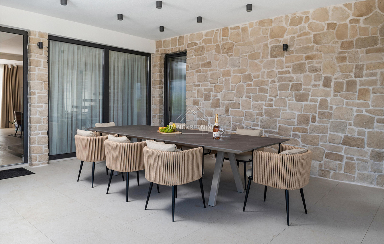 - Prizemlje: moderna kuhinja, prostrana blagovaonica, elegantan dnevni boravak, kupaonica, spavaća soba te dvije natkrivene terase za opuštanje.