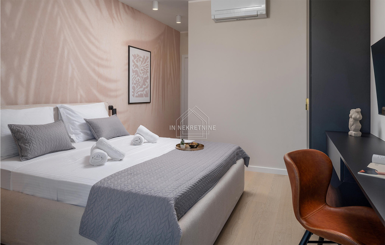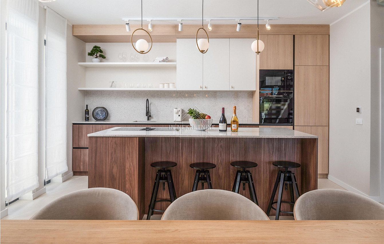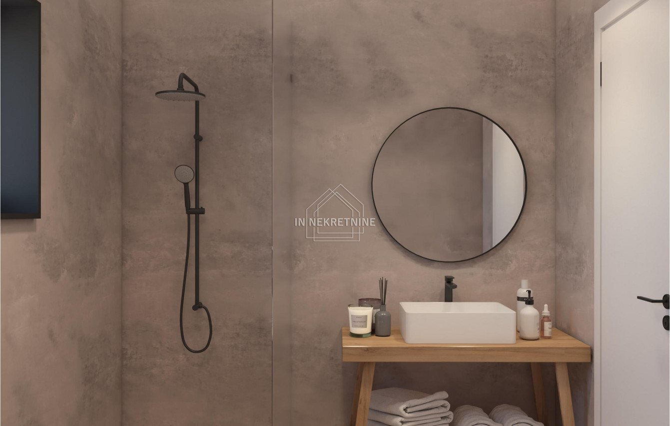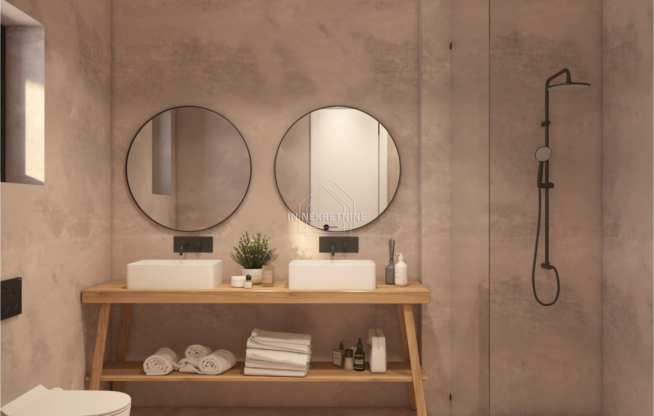 - Podovi: mikrocement u dnevnim prostorijama, prvoklasni hrastov parket u spavaćim sobama