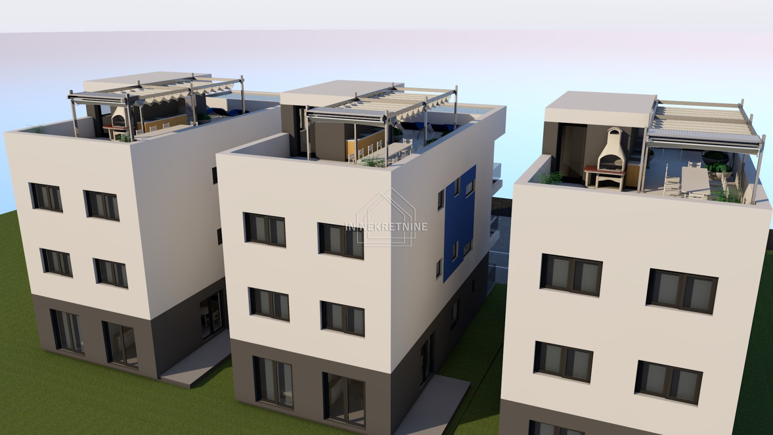U ponudi je 12 stambenih jedinica (tri zgrade s četiri stambene jedinice). Nalaze se na odličnoj lokaciji, udaljenost od mora i prekrasne plaže je 80 metara. S drugog kata se pruža pogled na more. U izgradnji i opremanju se korisite isključivo najkvalitetniji materijali od renomiranih proizvođača. Svi stanovi će biti spojeni na gradski vodovod i kanalizaciju. Više informacija na upit.