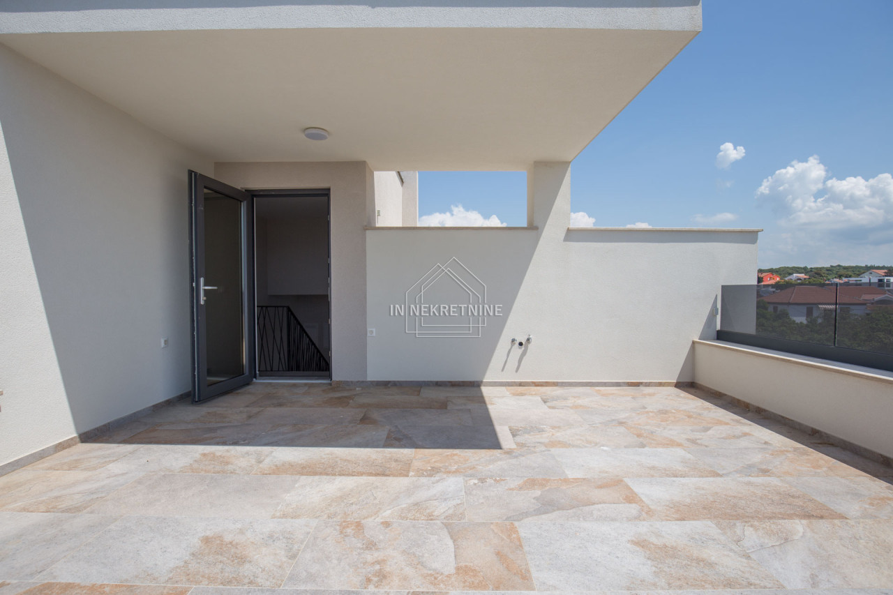 Na prodaju je moderan troetažan stan površine 112,44 m², smješten u atraktivnom mjestu Petrčane, u neposrednoj blizini Zadra, na odličnoj lokaciji svega 100 metara od mora i plaže.