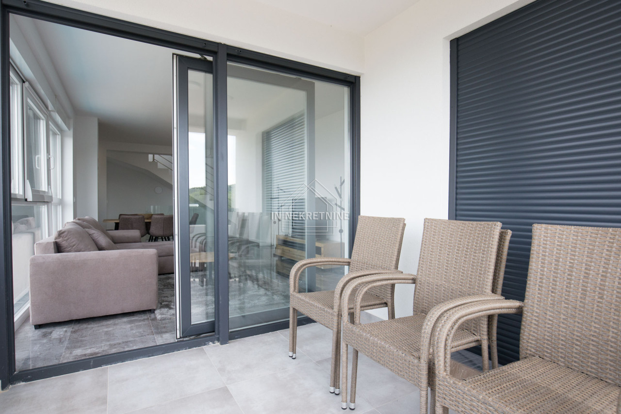 STAN 4 - 112,24 m2 sastoji se od kuhinje, blagovaonice, dnevnog boravka, kupaonice, tri spavaće sobe, natkrivene terase i krovne terase ( 78 m2 obračunata po koeficijentu 0,25). Stanu pripada spremište u podrumu zgrade i vanjsko parkirno mjesto. Prodaje se kompletno namješten. CIJENA - 448.960,00 EUR.