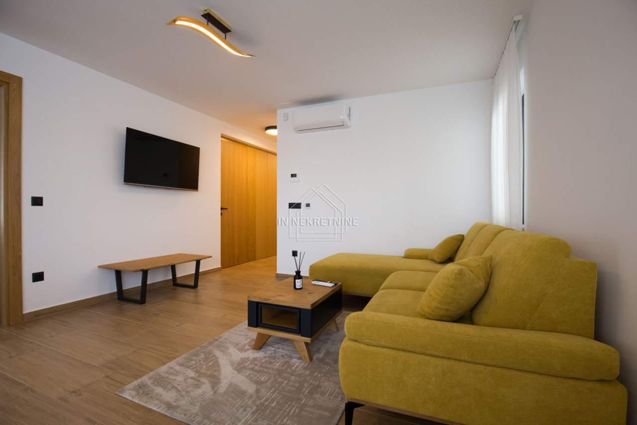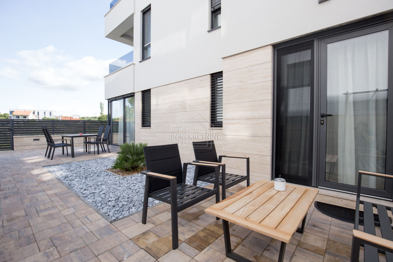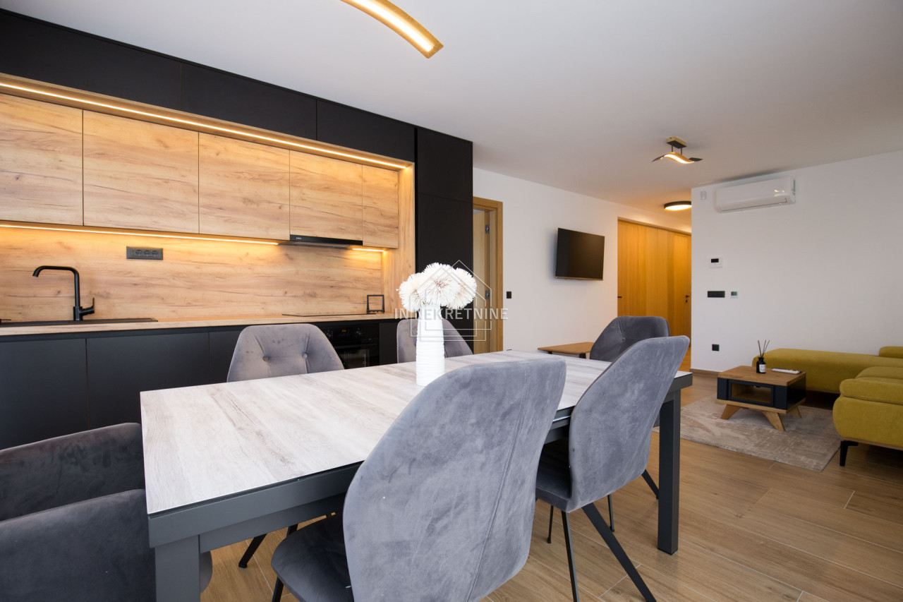 Na prodaju je izuzetna nekretnina u prizemlju novoizgrađene apartmanske zgrade, ukupne površine 144 m². Stan je funkcionalno podijeljen u tri zasebne stambene jedinice te wellness prostor, što ga čini idealnim izborom za veću obitelj ili kao izvrsnu investiciju za turistički najam.