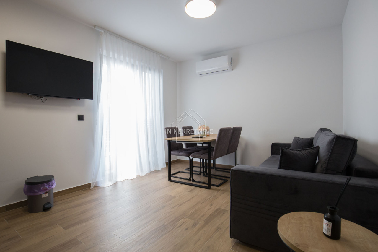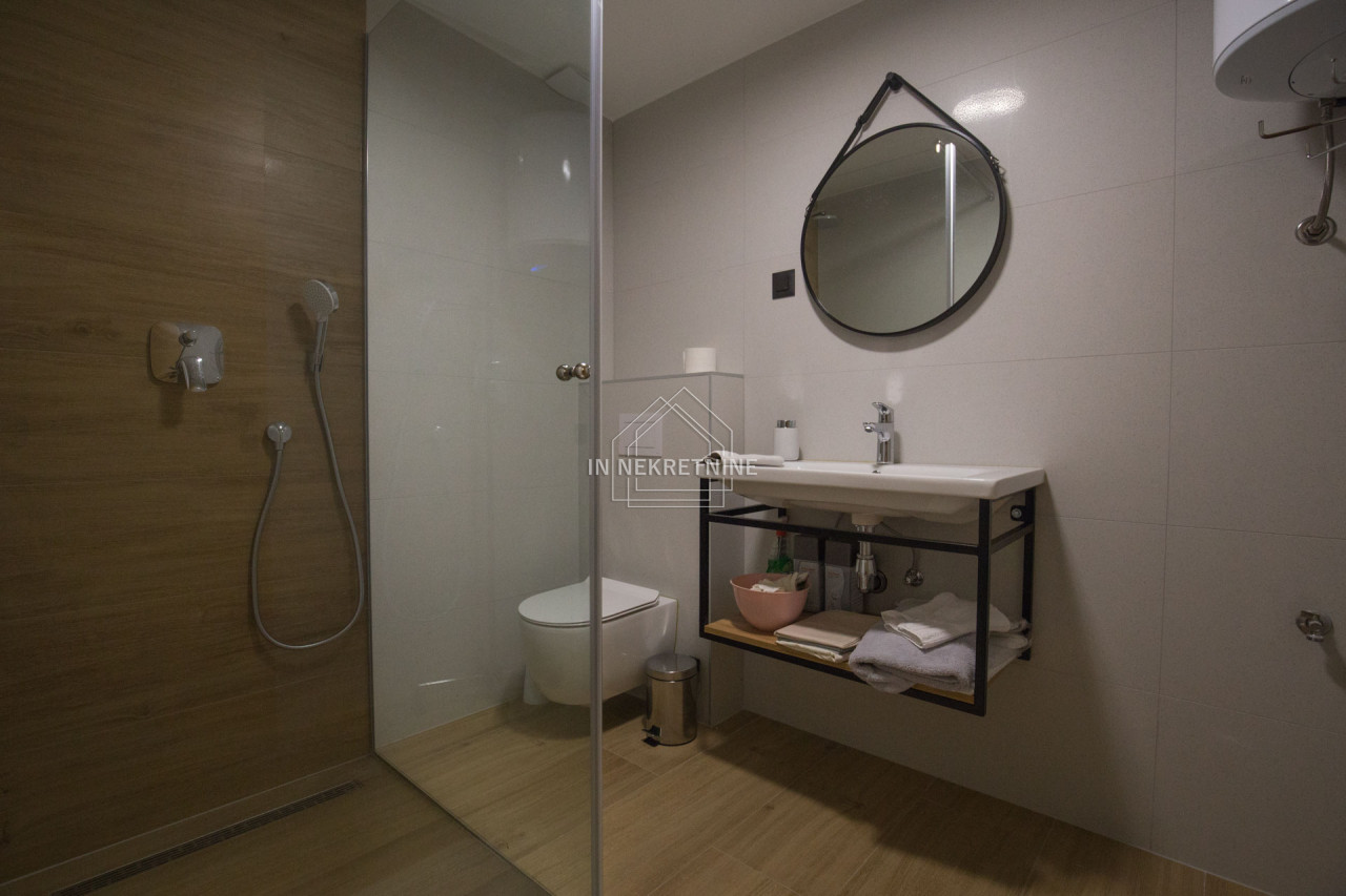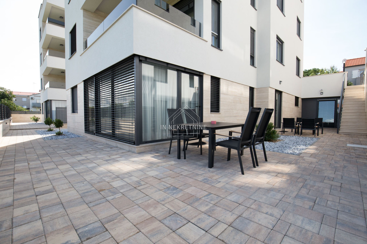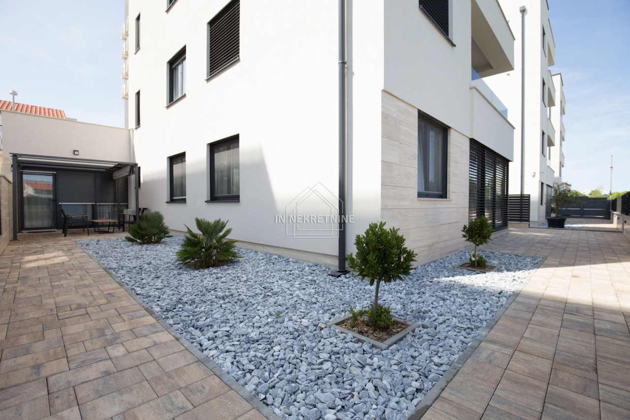 Na prodaju je izuzetna nekretnina u prizemlju novoizgrađene apartmanske zgrade, ukupne površine 144 m². Stan je funkcionalno podijeljen u tri zasebne stambene jedinice te wellness prostor, što ga čini idealnim izborom za veću obitelj ili kao izvrsnu investiciju za turistički najam.