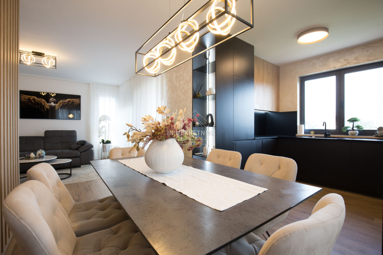 Prodaje se potpuno namješten i opremljen ( kao na slikama), u izgradnji i opremanju su korišteni isključivo najkvalitetniji materijali od renomiranih proizvođača. Nalazi se na odličnoj lokaciji udaljenoj od mora i plaže 200 metara. Idealno za veliku obitelji ili kao poslovna investicija (turistički najam).