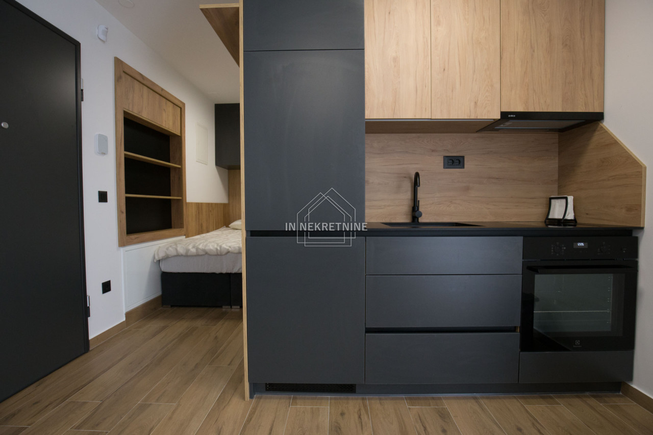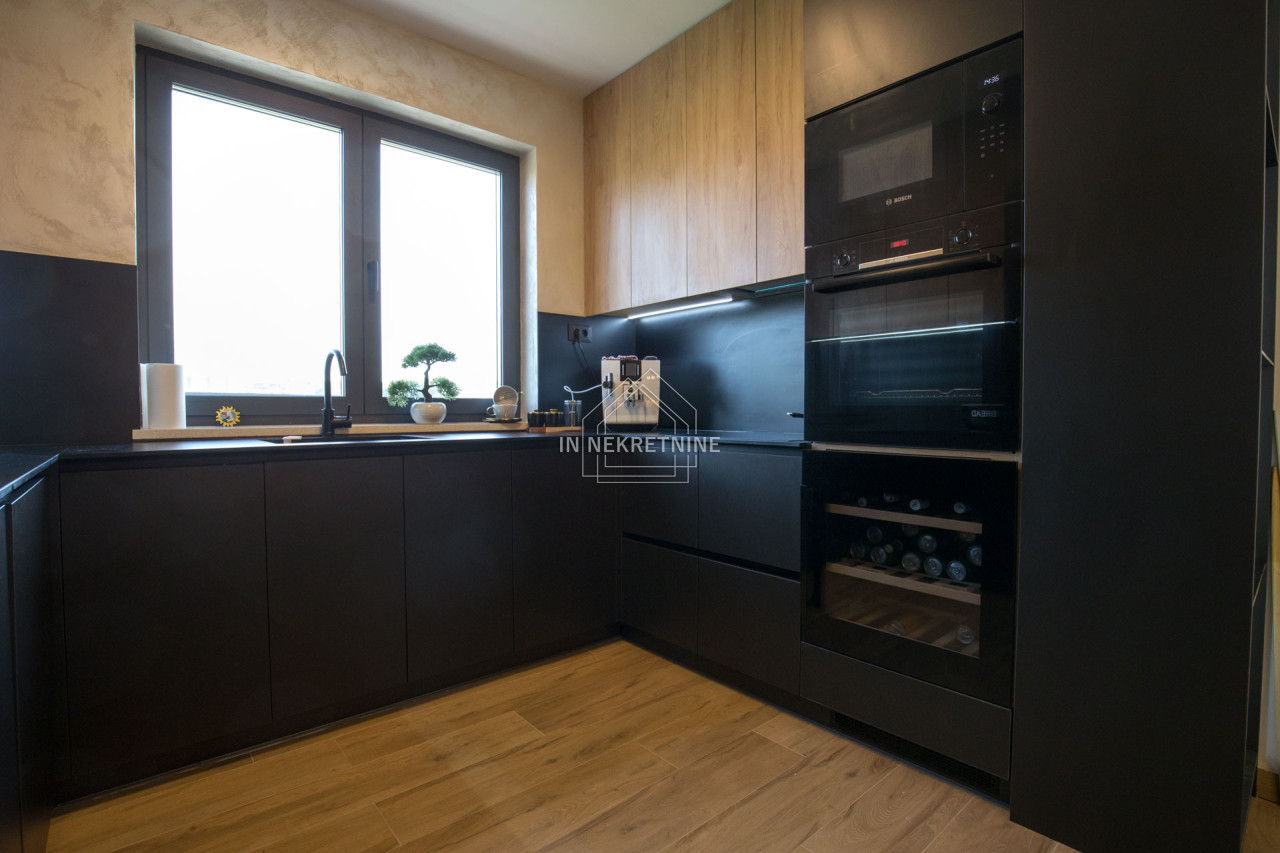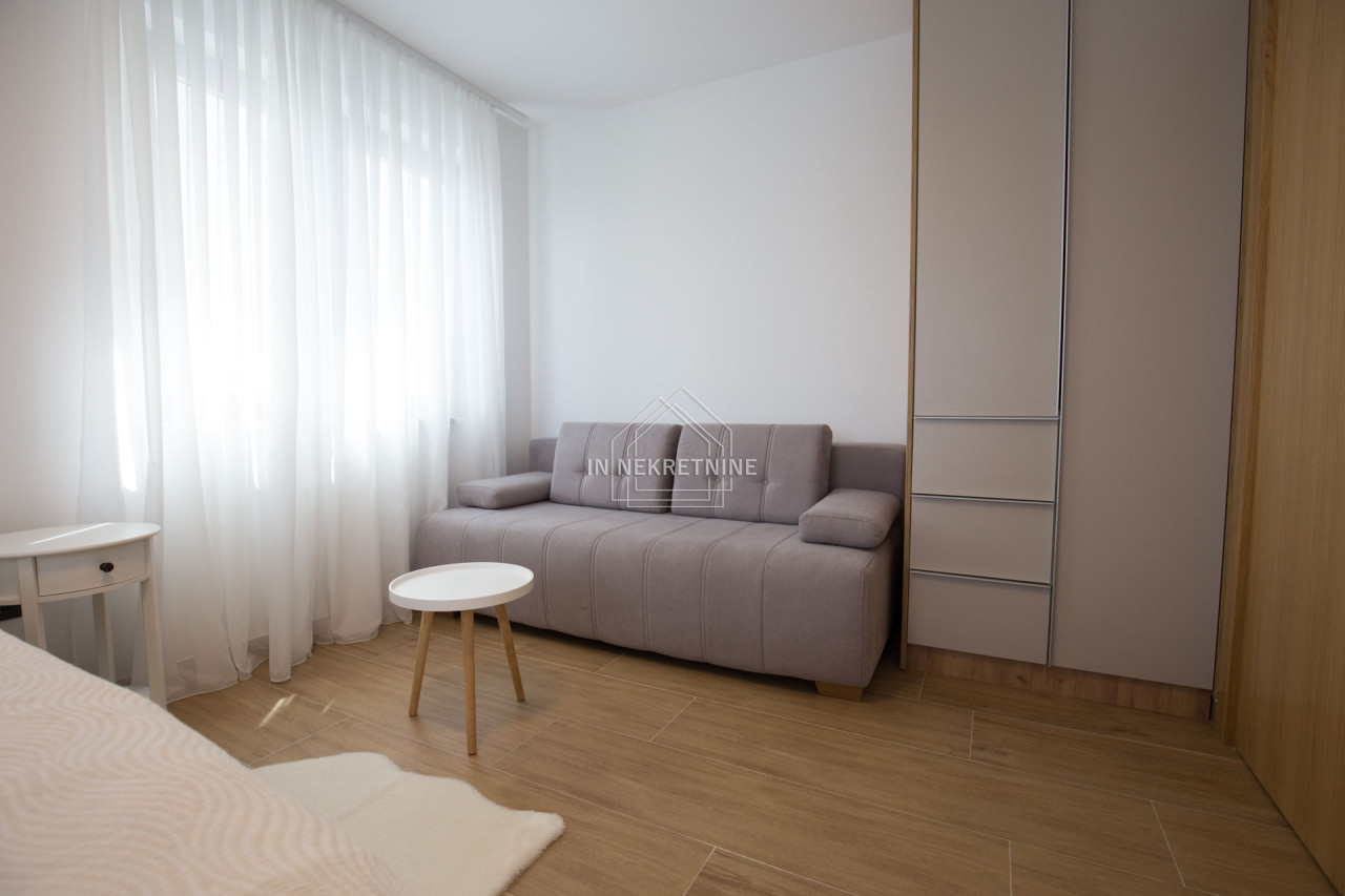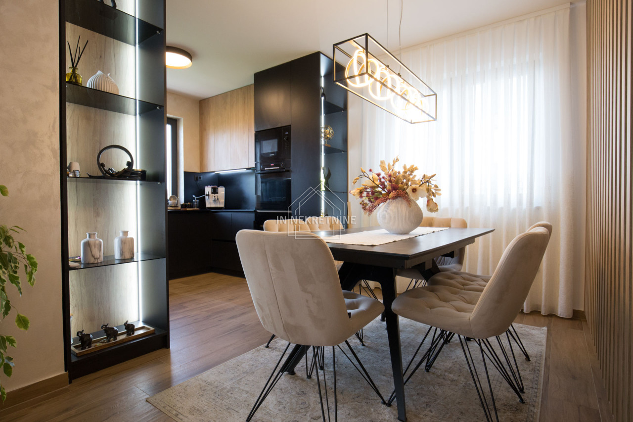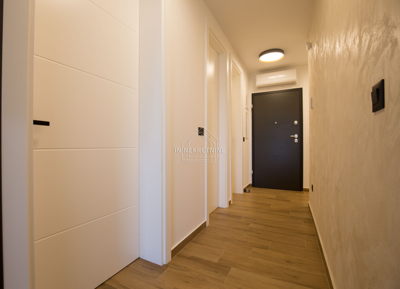 Stan površine 144 m2 nalazi se u prizemlju novoizgrađene apartmanske zgrade. U naravi je podjeljen je u tri stambene jedinice i wellnes. Stan 1 je površine 64 m2 ( ima dvije spavaće sobe), stan 2 je površine 36 m2 (jedna spavaća soba), stan 3 je površine 24 m2 (garsonijera) i wellness je površine 20 m2. Pripada mu cijelo dvorište površine 145 m2.