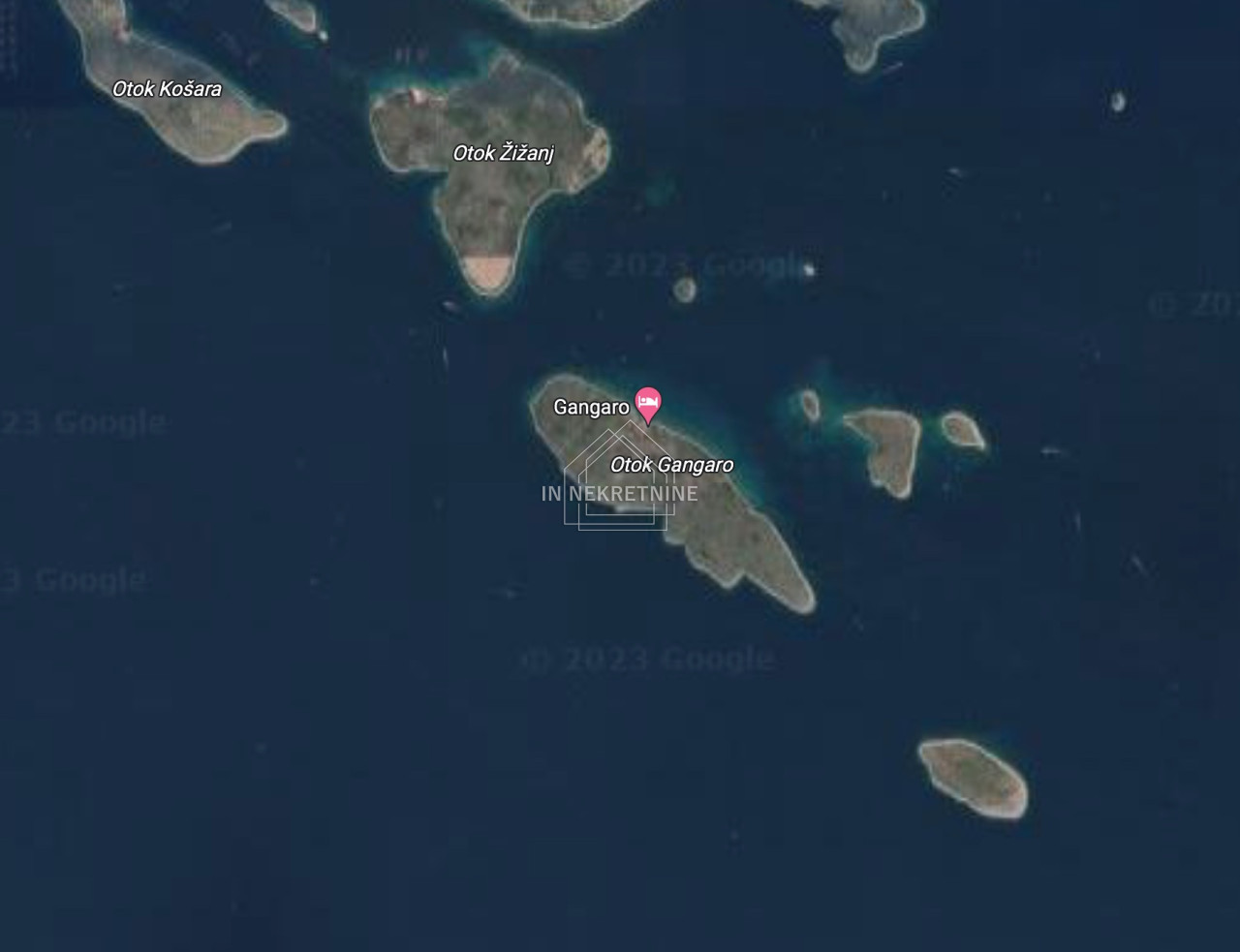 Poljoprivredno zemljište površine 1296 m2 nalazi se na otoku Gangarol u općini Tkon, pravilnog je oblika i dimenzija, širina parcele odnosno dio koji ide uz morsku obalu je 50 metara. Otok Gangarol se nalazi između otoka Pašmana i Žuta u blizini NP Kornati.