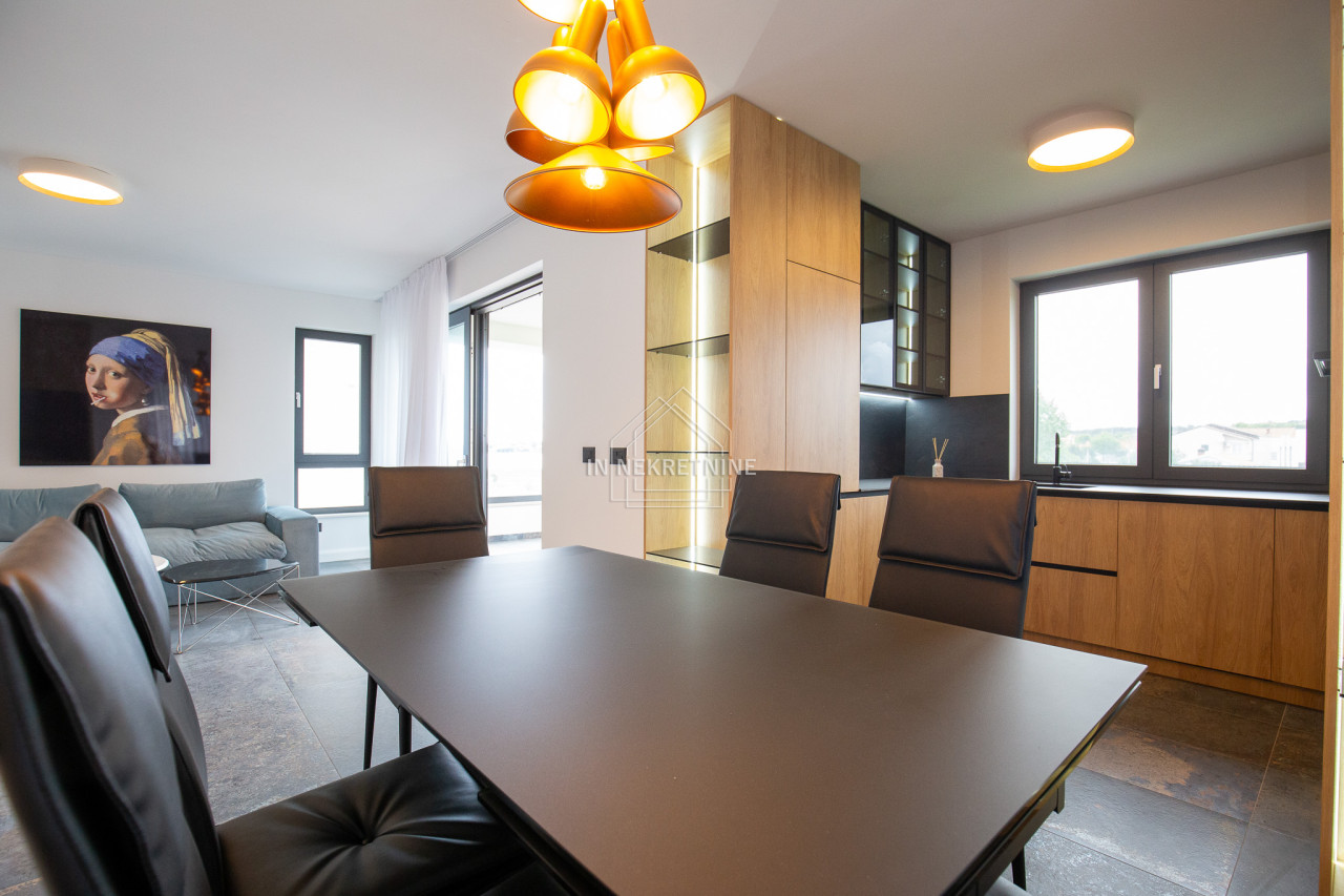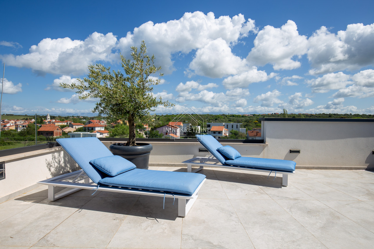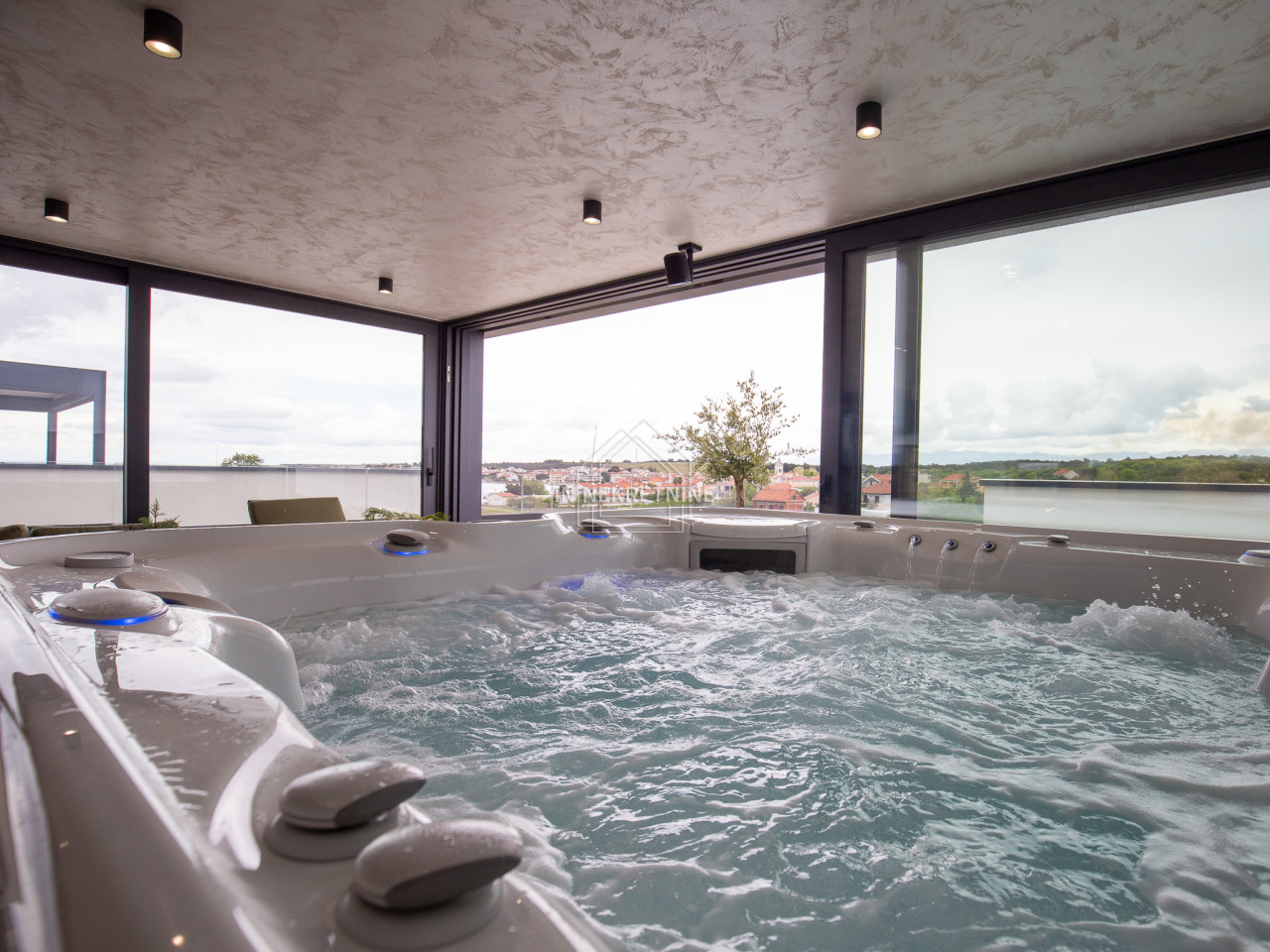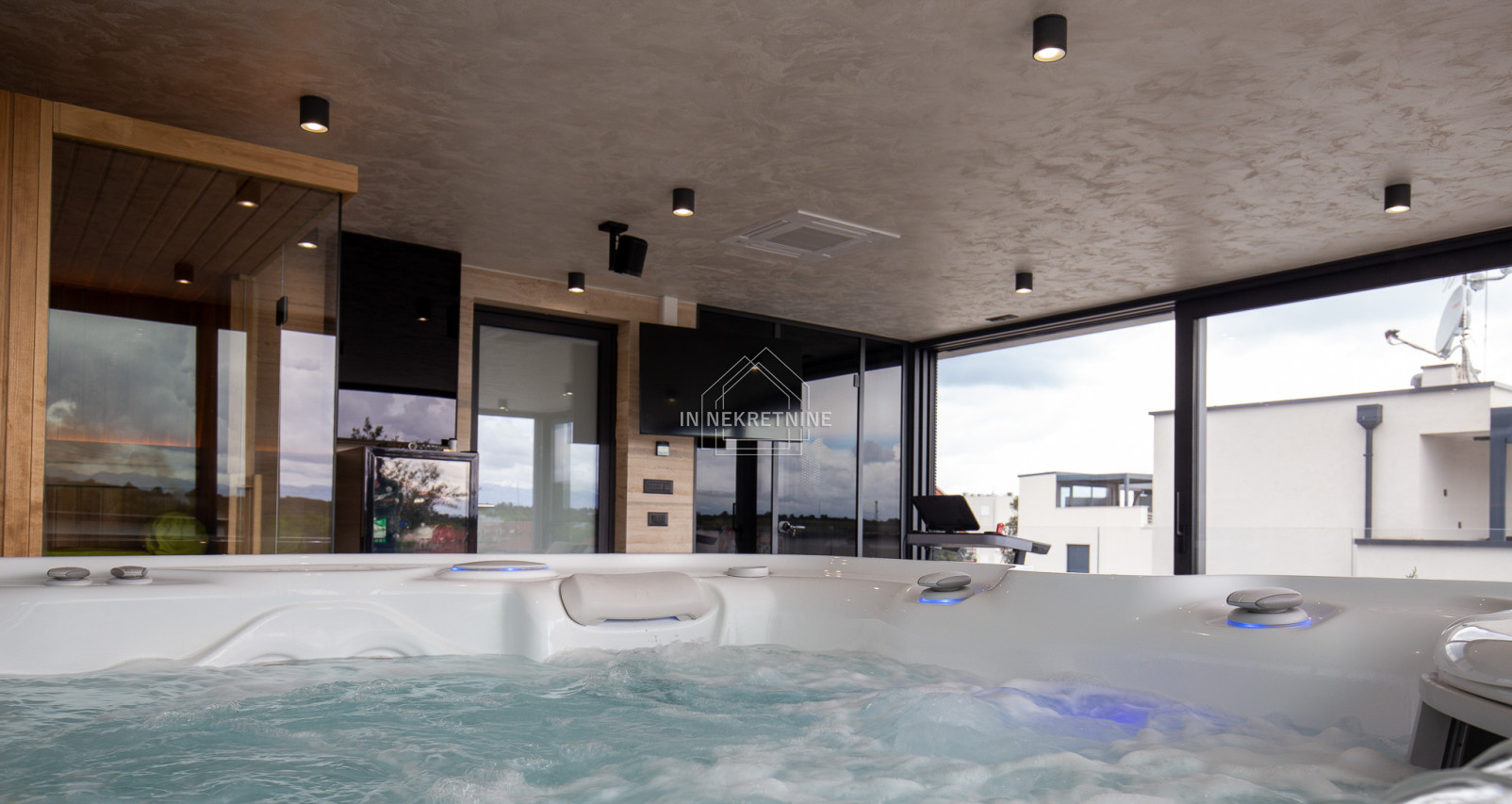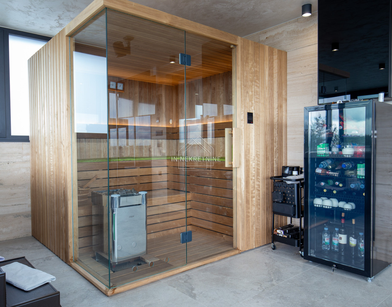 Na krovnoj terasi nalazi se wellness s saunom, jacuzzijem, kupaonicom i prostorom za druženje.