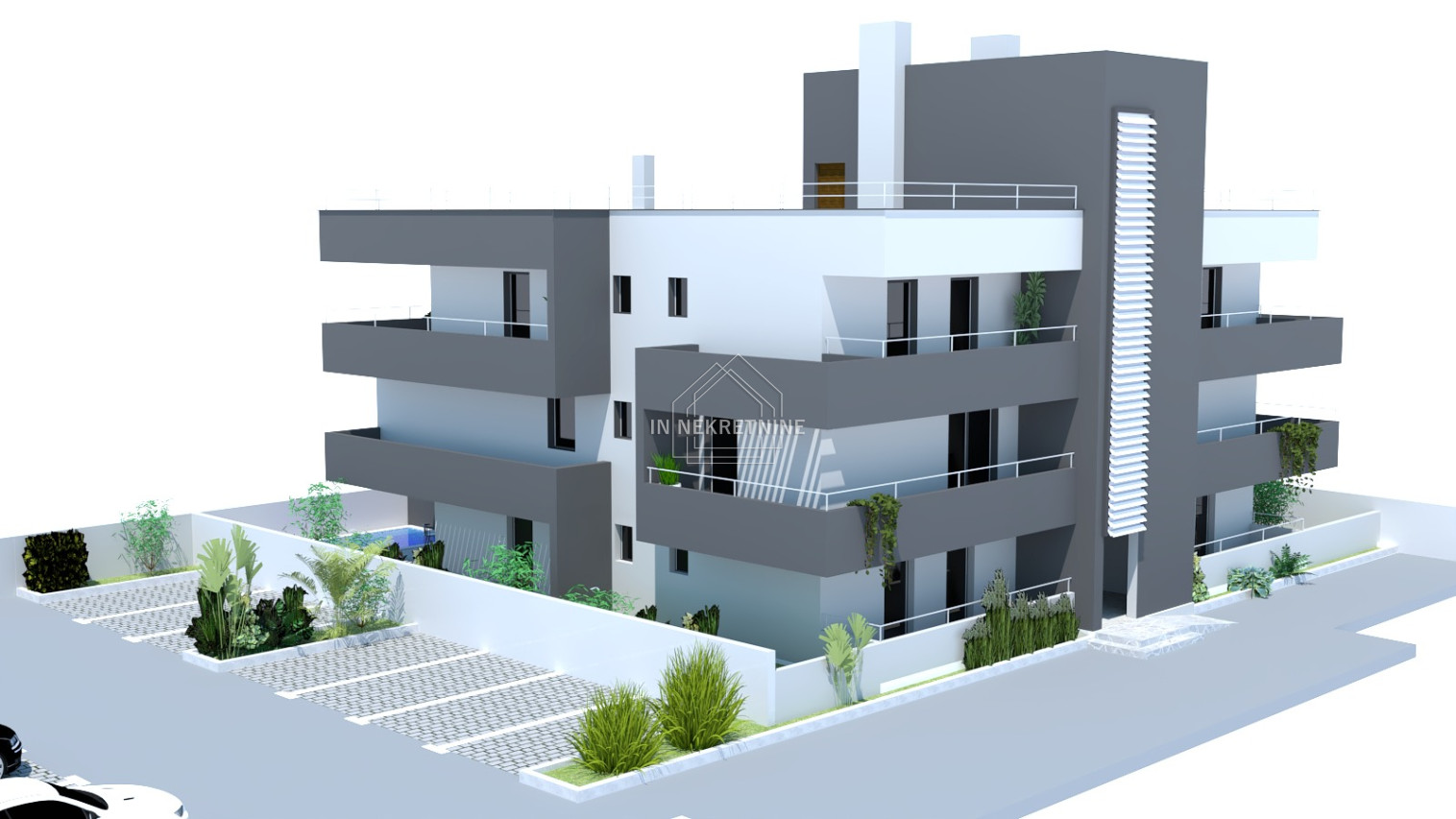S1-77,67 m2. Sastoji se od kuhinje, blagovaonice, dnevnog boravka, kupaonice, wc-a, dvije spavaće sobe, balkona i terase. Stanu pripadaju vrt u kojemu se nalazi bazen i dva vanjska parkirna mjesta. Tlocrtna površina stana je 115 m2. CIJENA- 399.000,00 EURA