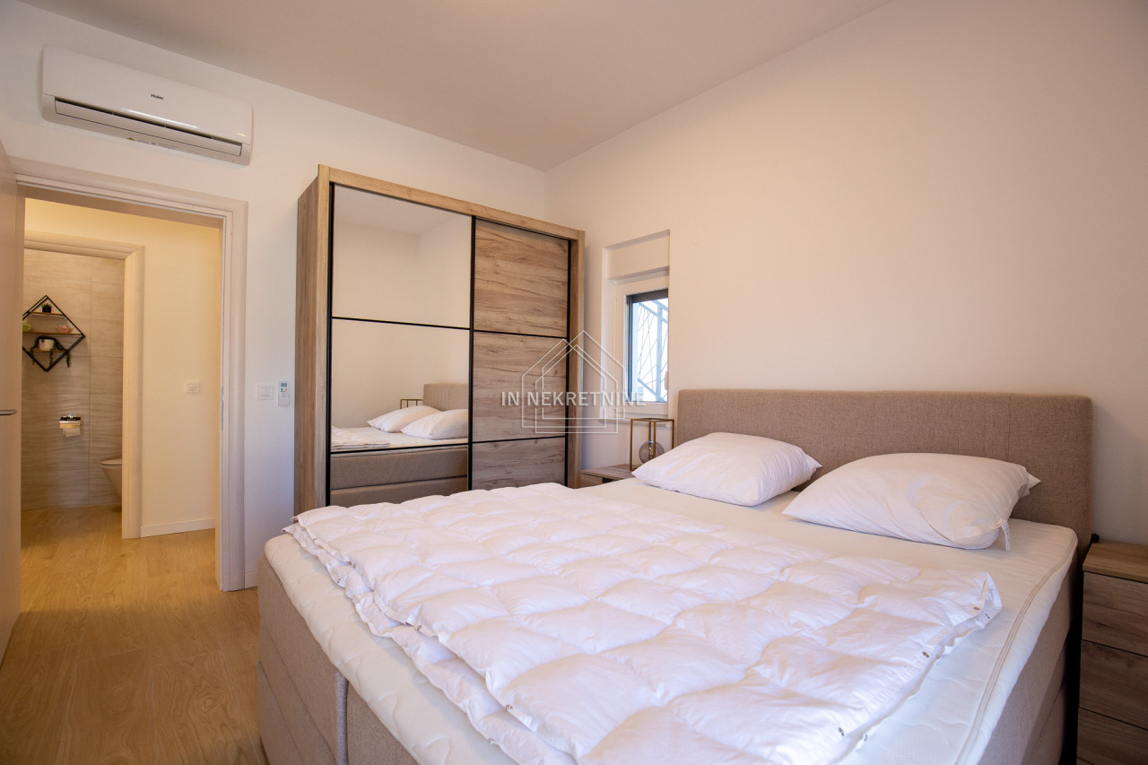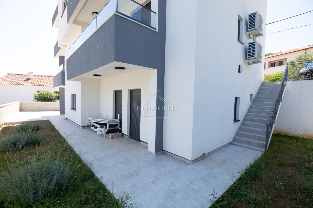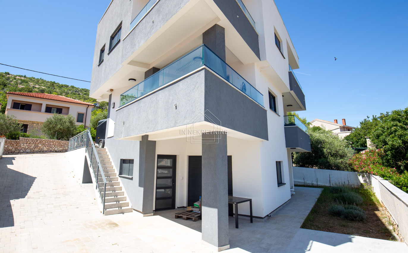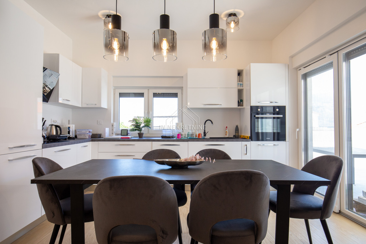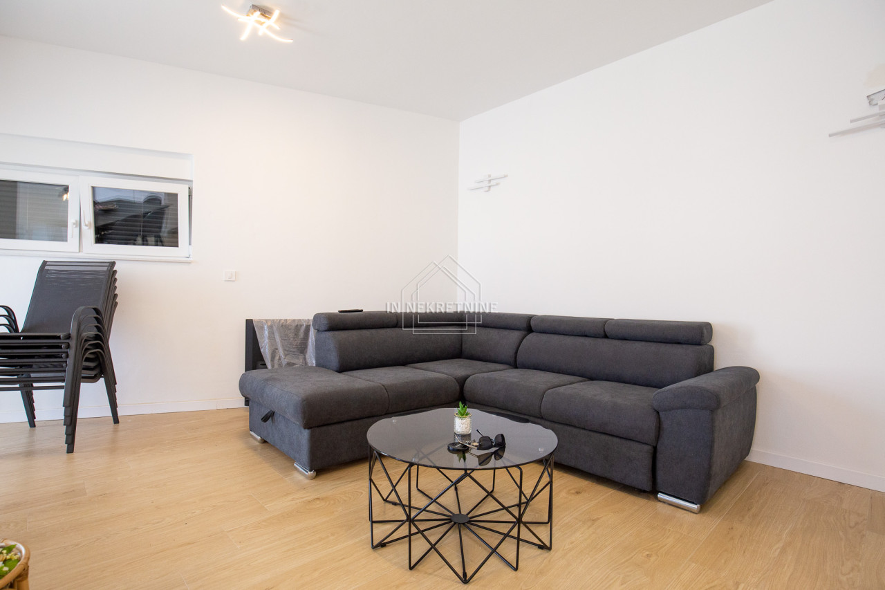 Na prodaju je moderno opremljen i potpuno namješten stan u prizemlju, s privatnim vrtom i panoramskim pogledom na more i Velebit.