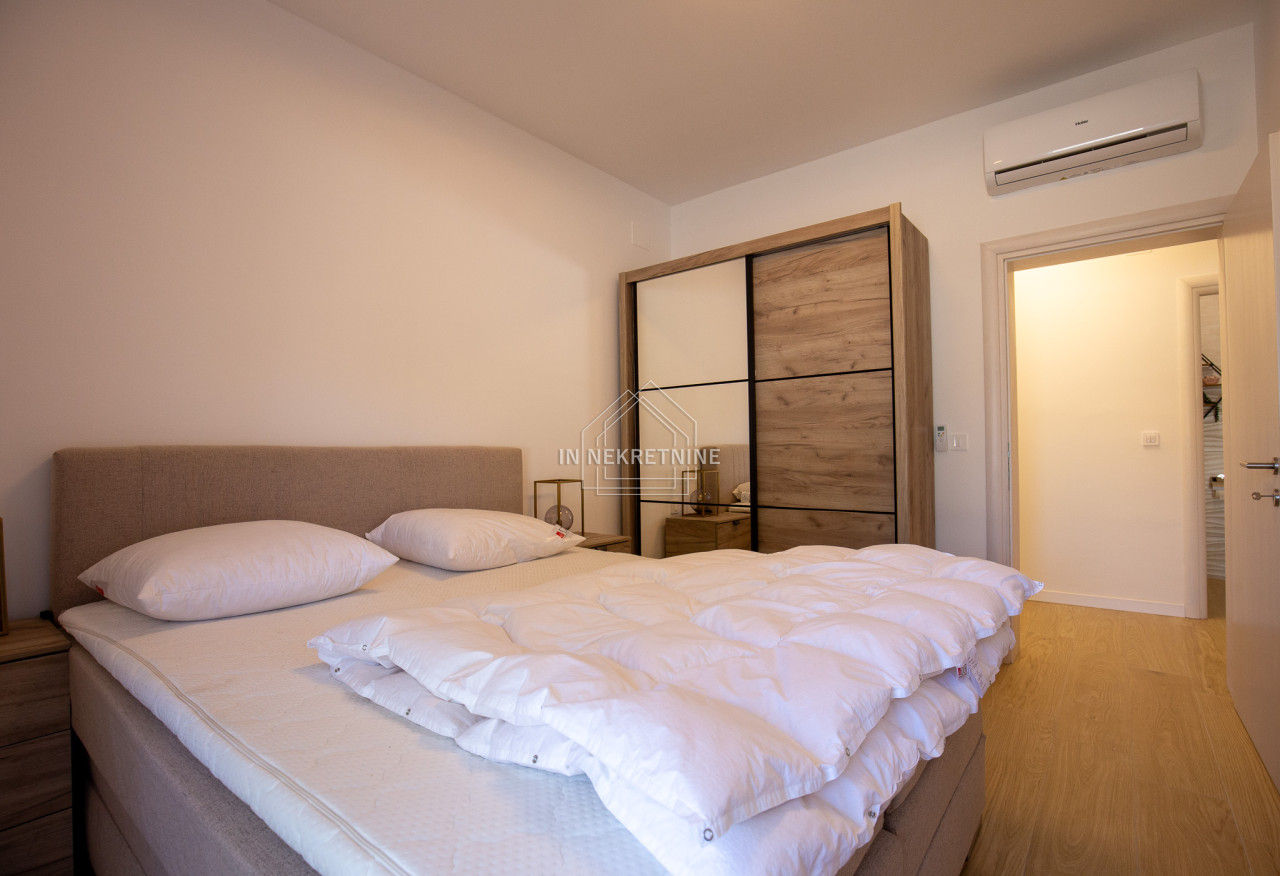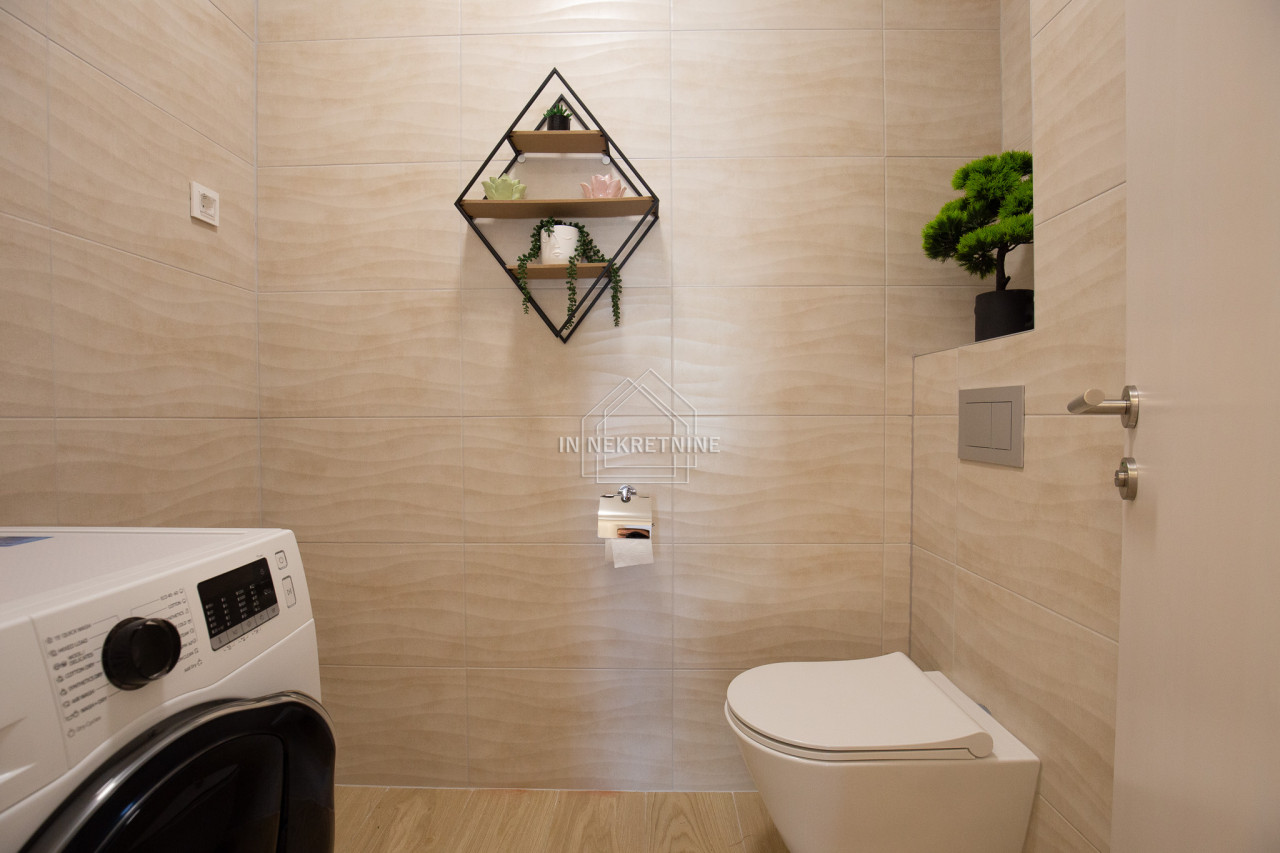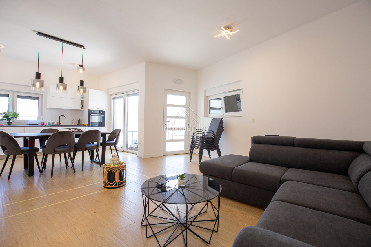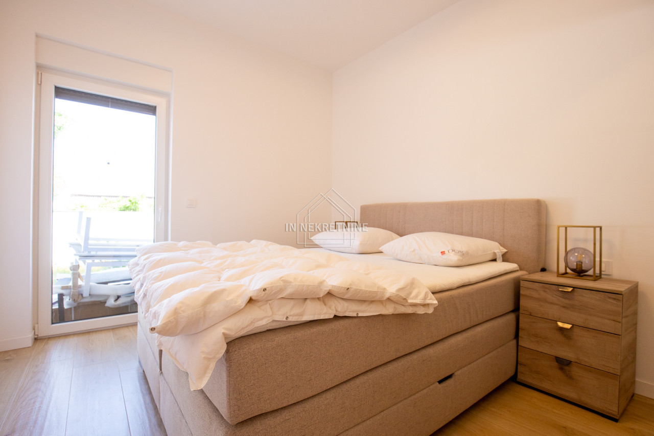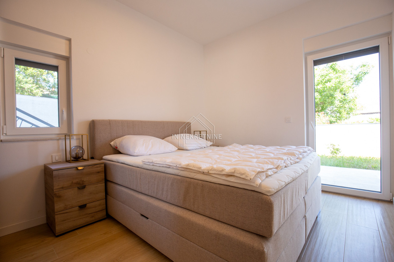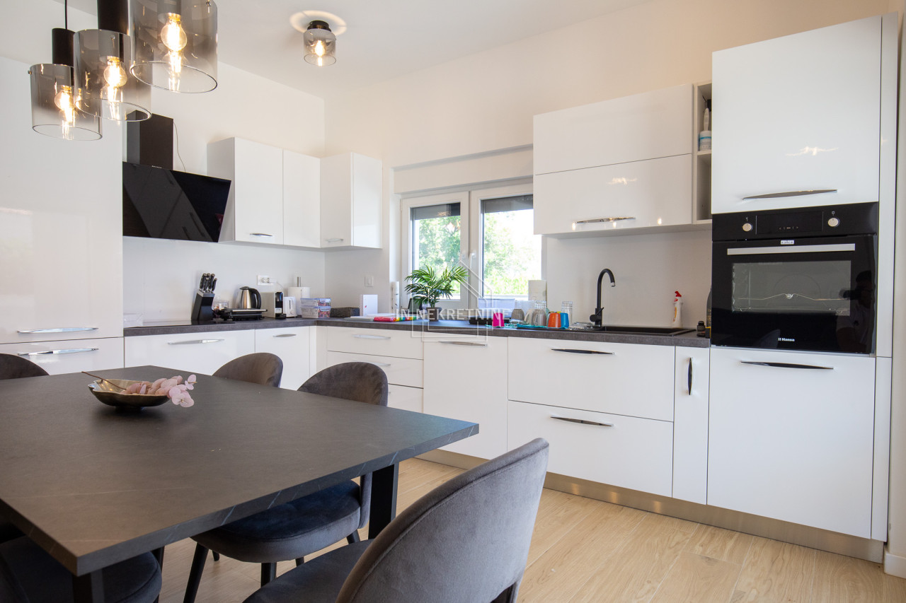 Na prodaju je moderno opremljen i potpuno namješten stan u prizemlju, s privatnim vrtom i panoramskim pogledom na more i Velebit.