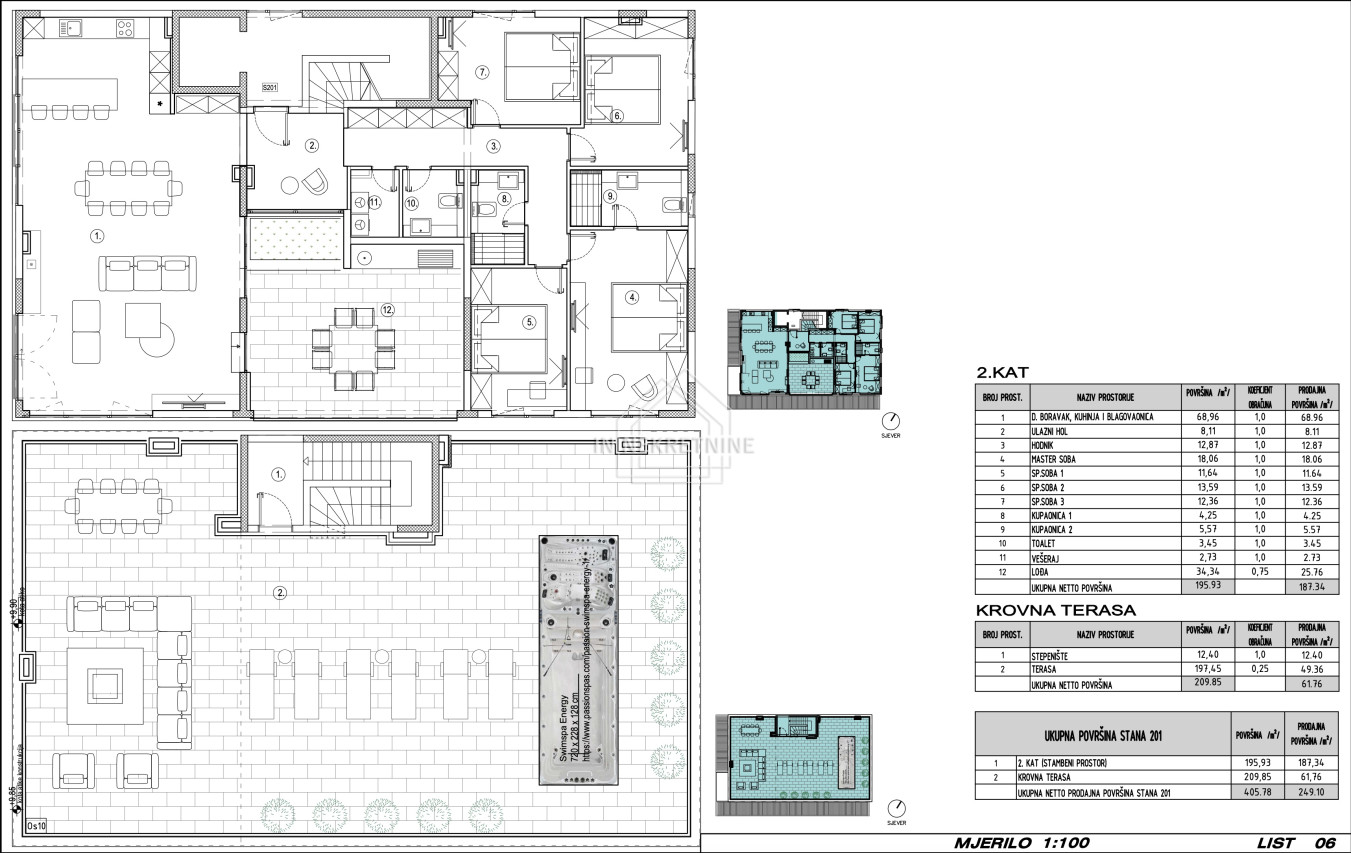 Penthouse zauzima brutto površinu od 405,78 m², dok je netto površina 249,10 m².