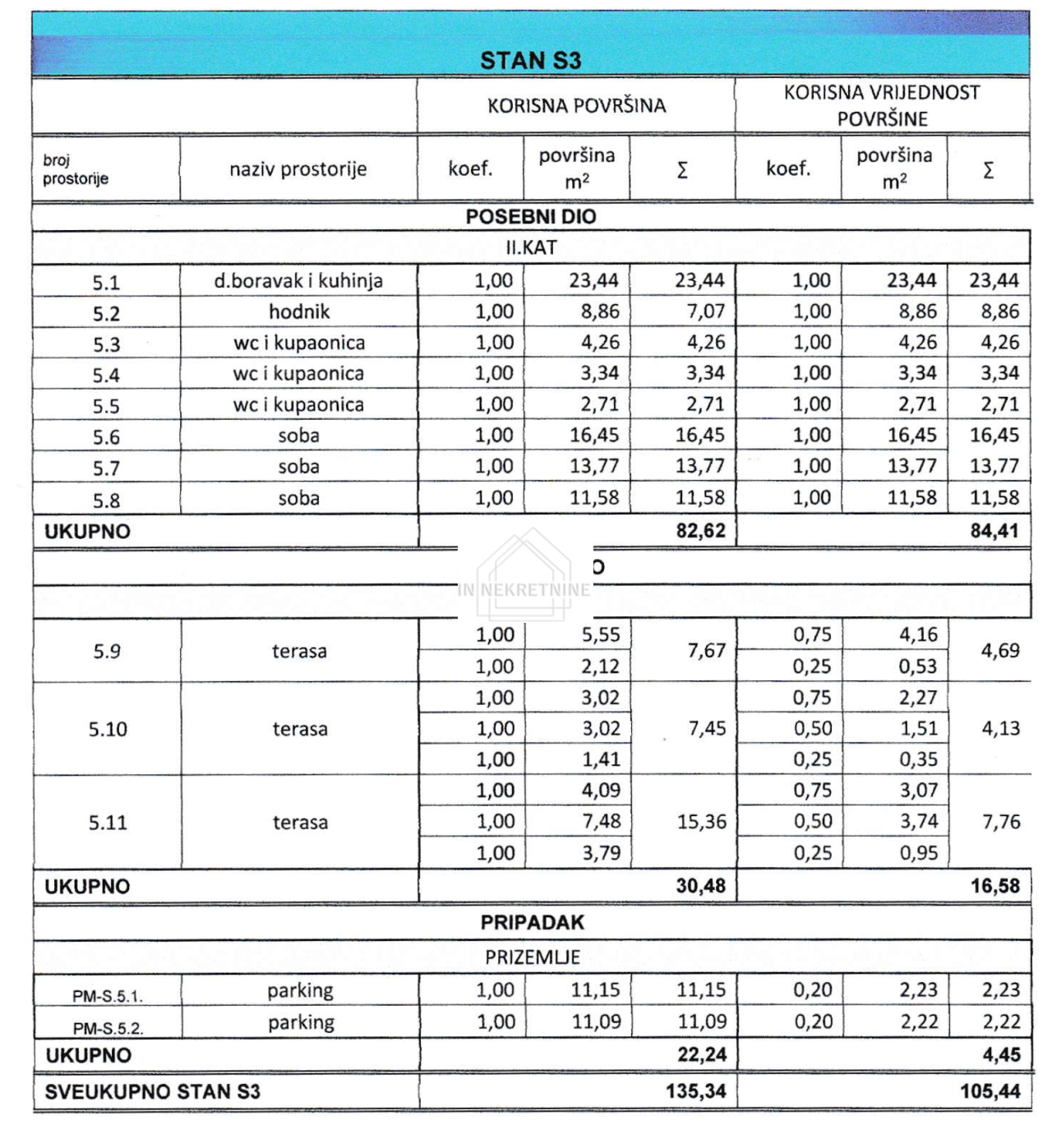 - dva vanjska parkirna mjesta.