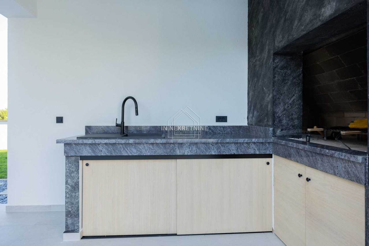 Luksuzna vila površine 234 m2 nalazi se na parceli površine 761 m2. Udaljenost od mora i prekrasne plaže je 400 metara.