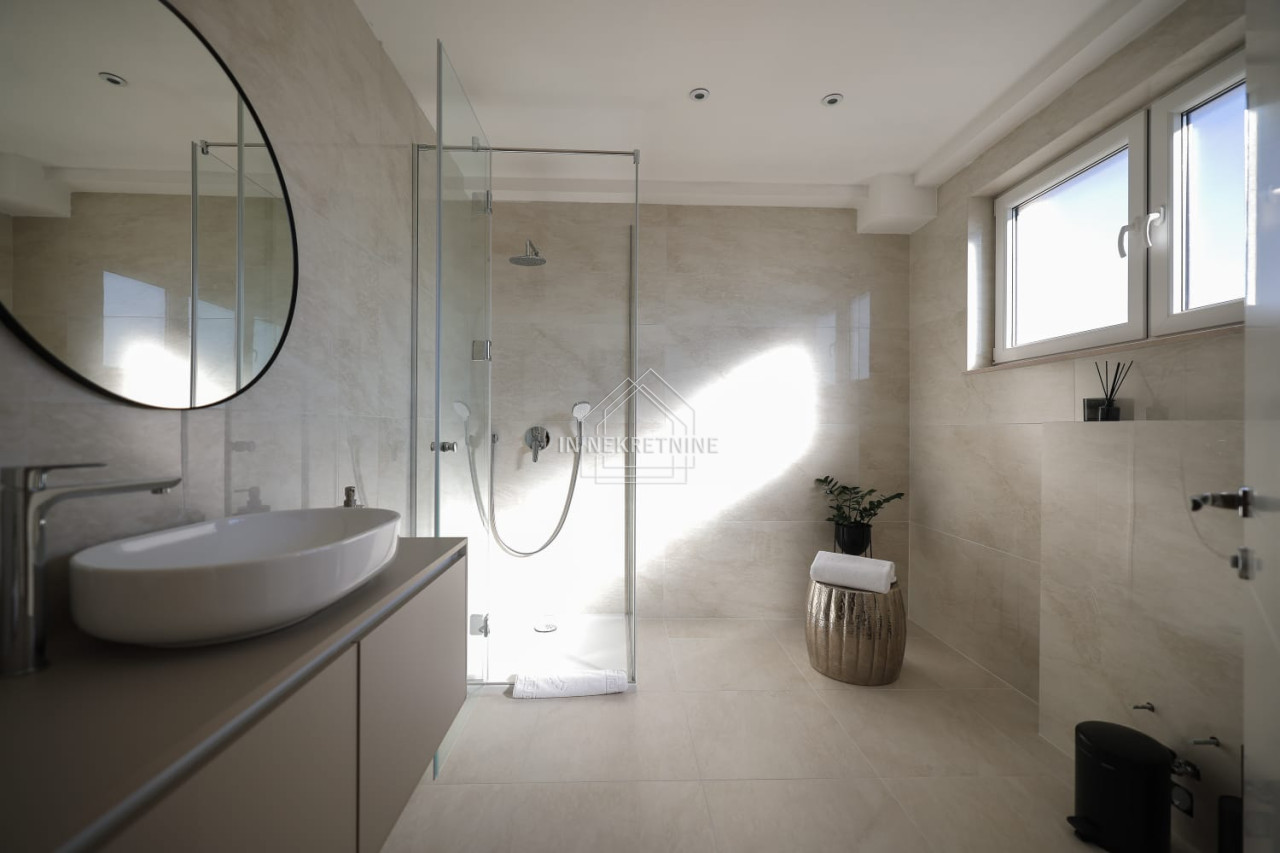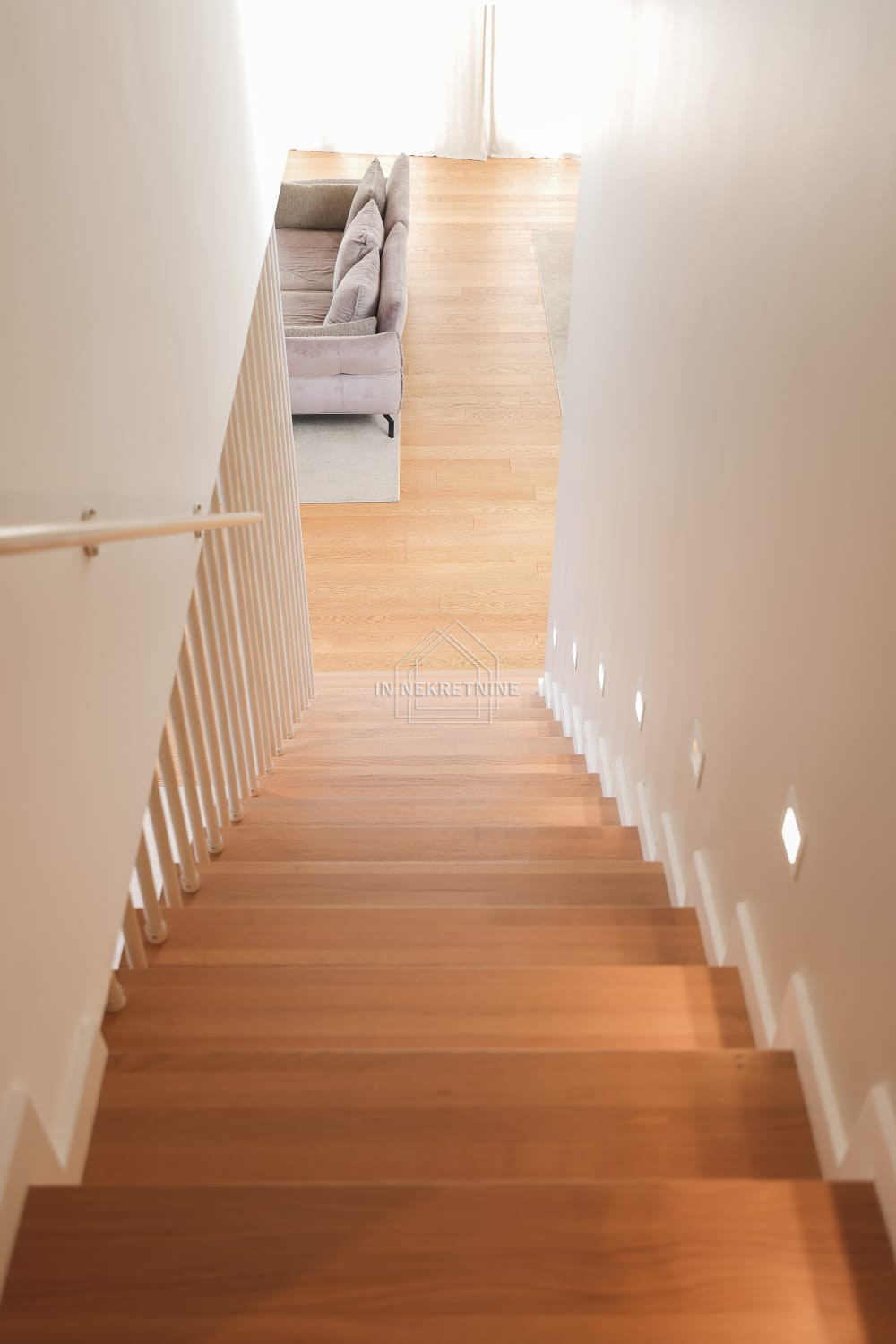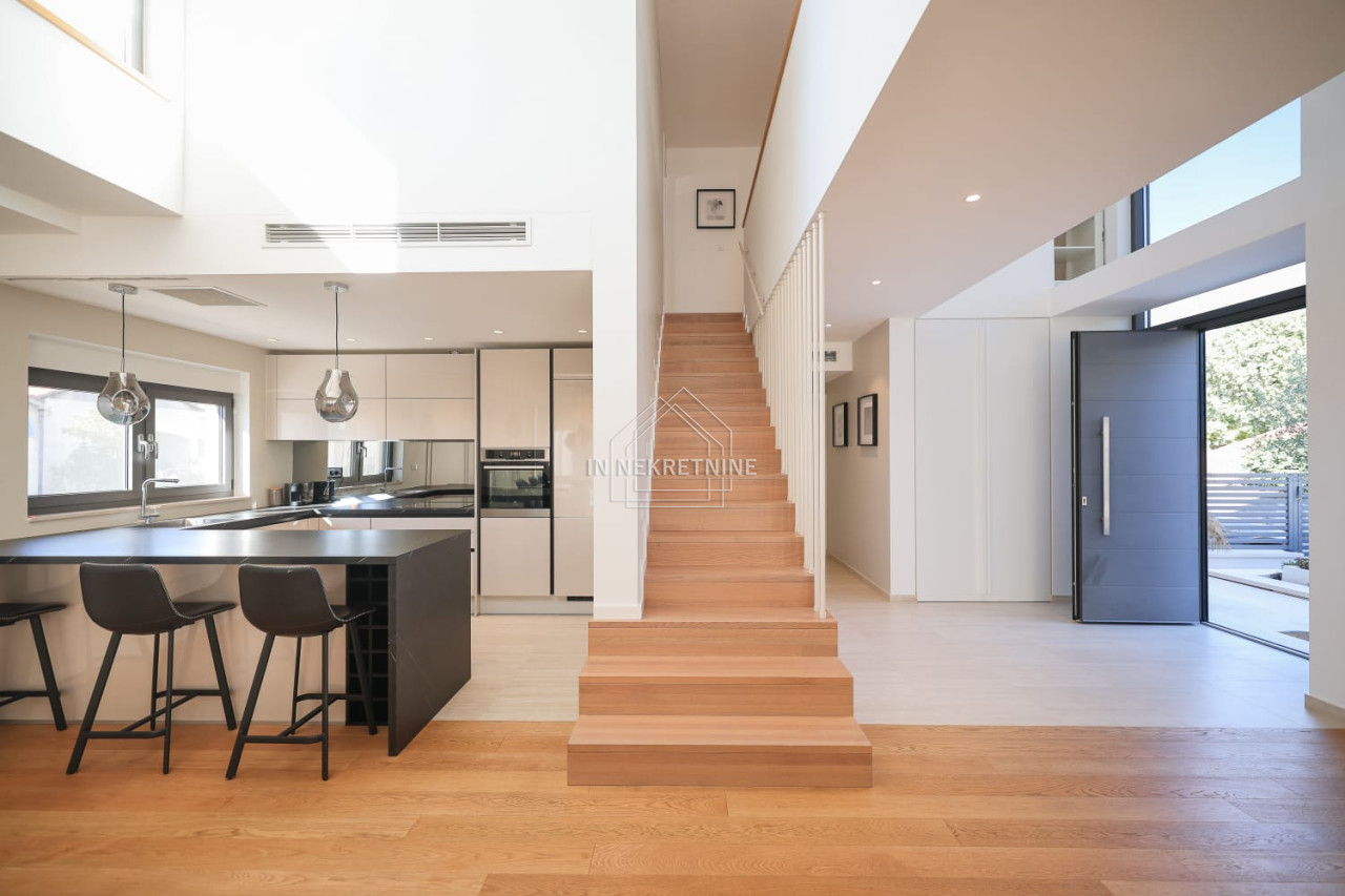- Prvi kat: Tri prostrane spavaće sobe, svaka s vlastitom kupaonicom (master soba ima i walk-in garderobu).