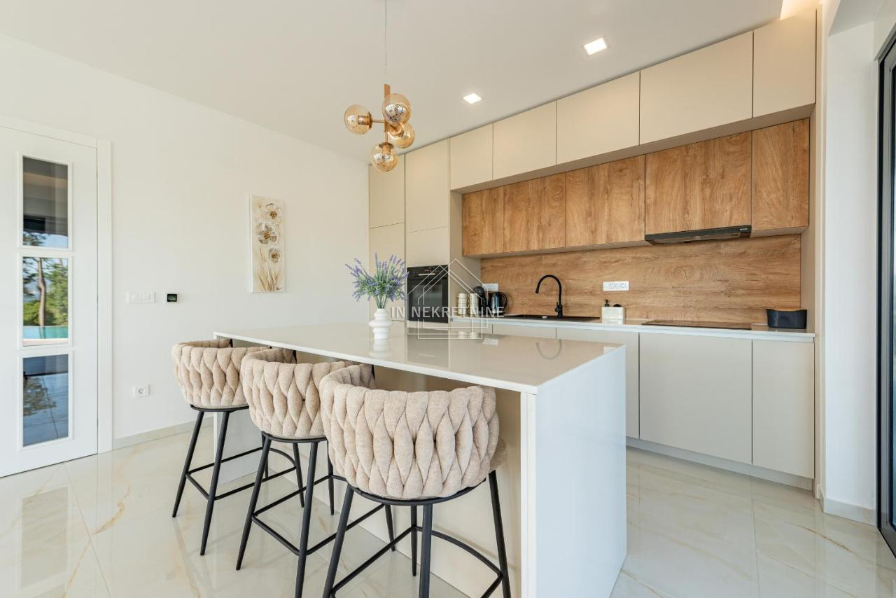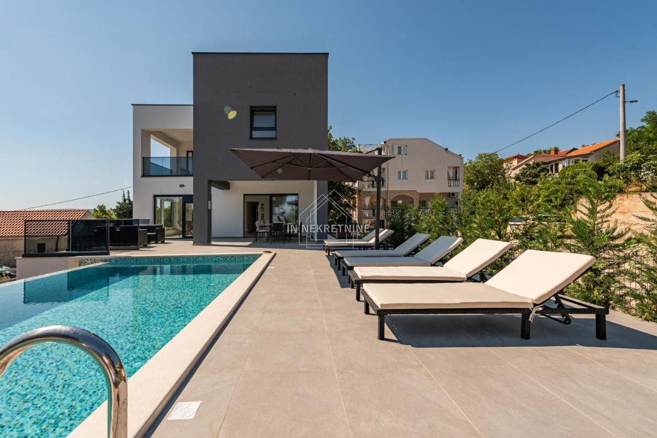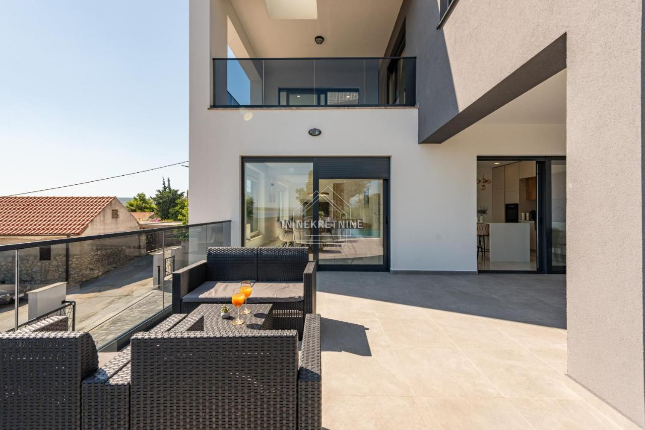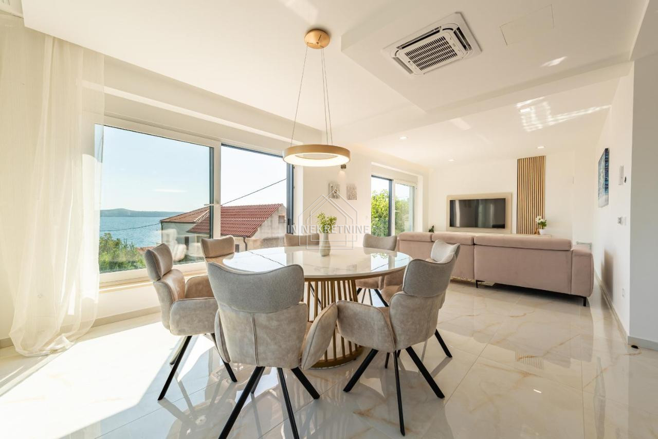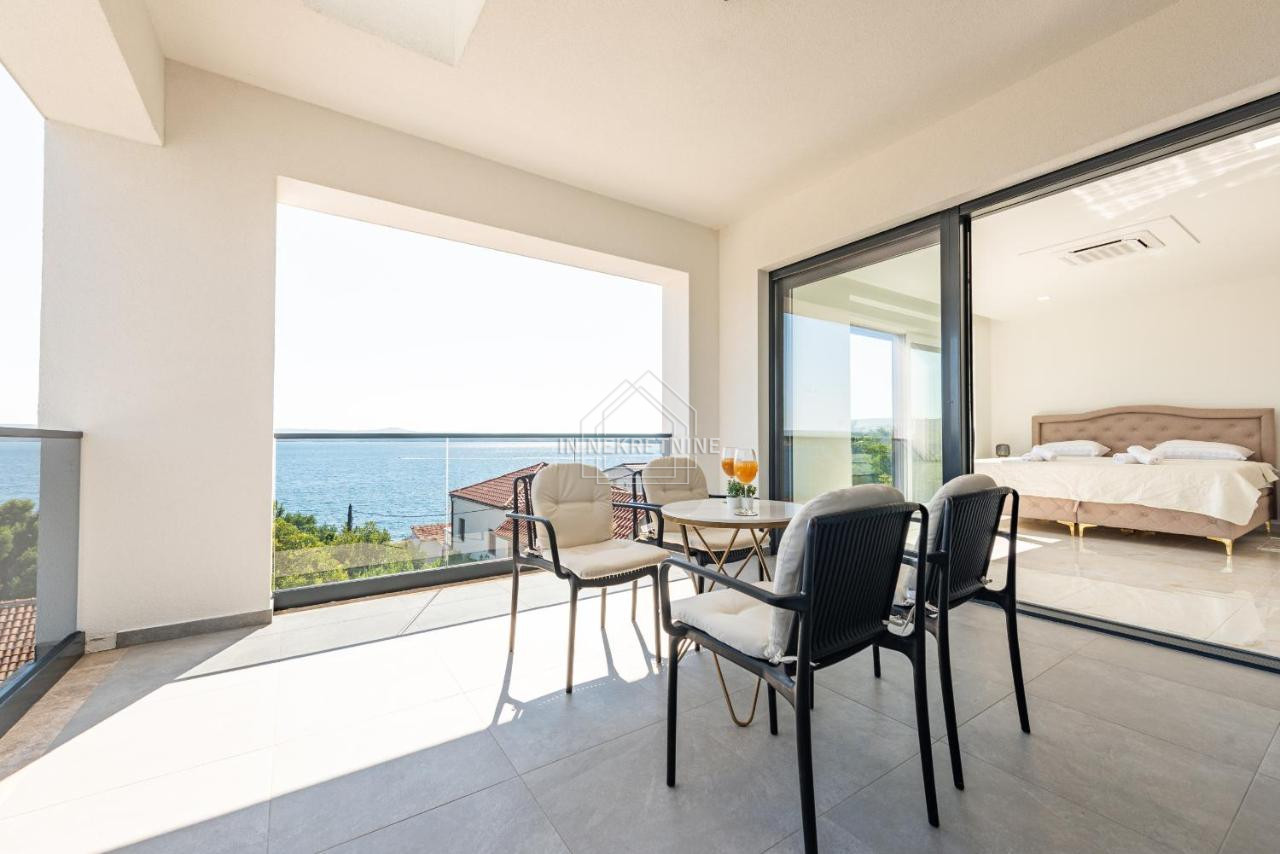 Na prodaju je novoizgrađena luksuzna vila s bazenom, površine 275 m², smještena na parceli od 526 m², na atraktivnoj lokaciji samo 70 metara od mora i plaže. Ova moderna vila ističe se vrhunskim dizajnom i spektakularnim pogledom na more iz gotovo svake prostorije.