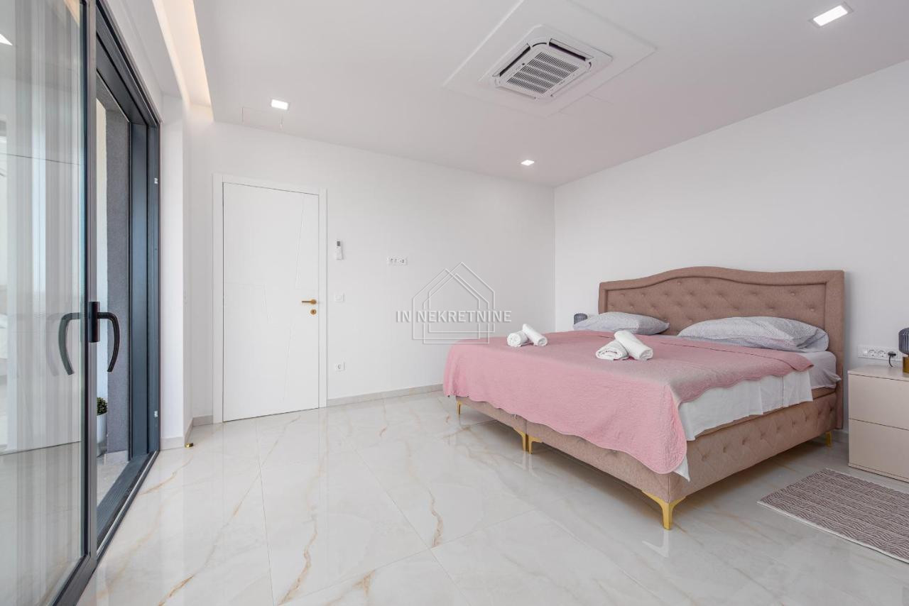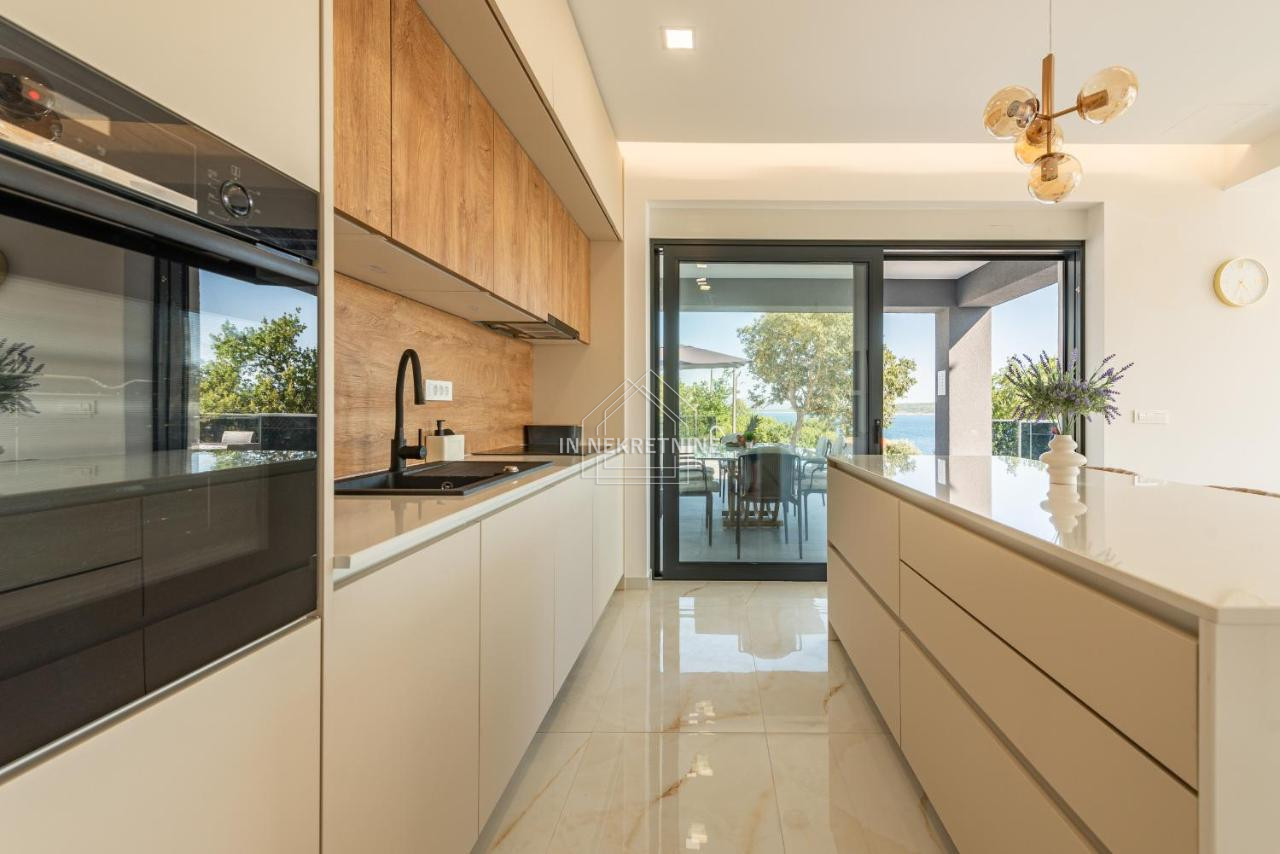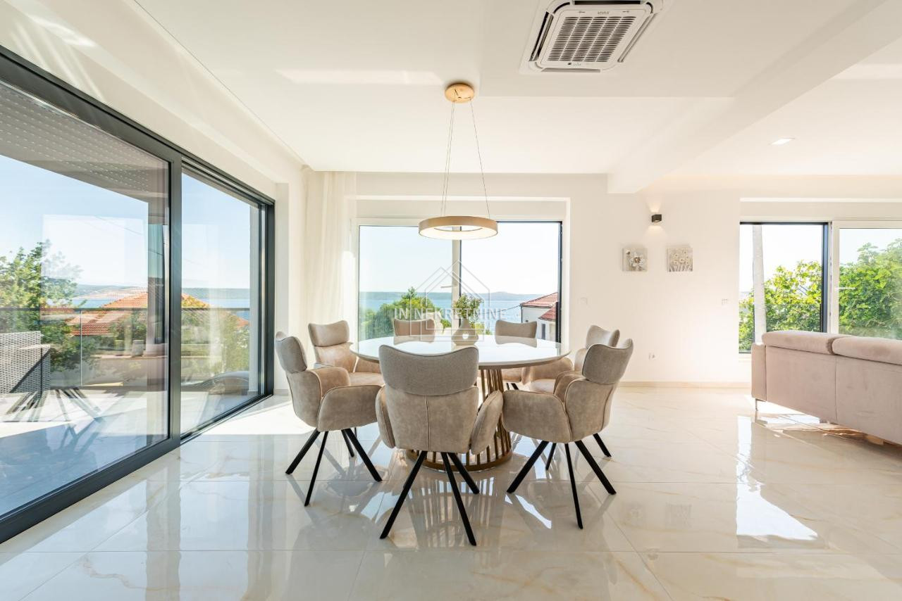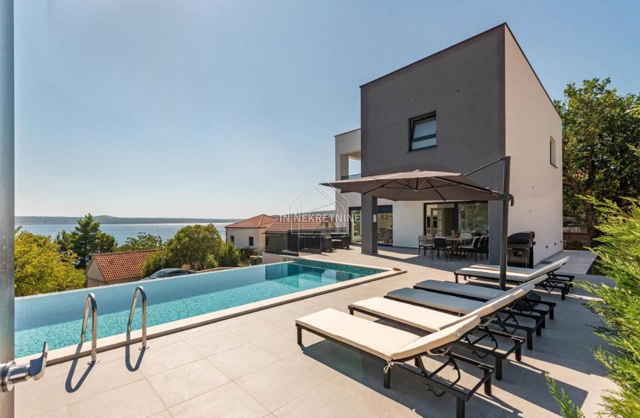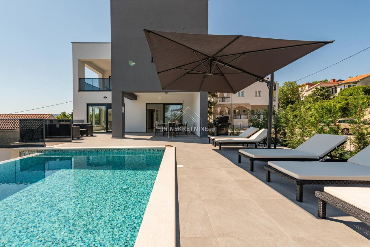 Na prodaju je novoizgrađena luksuzna vila s bazenom, površine 275 m², smještena na parceli od 526 m², na atraktivnoj lokaciji samo 70 metara od mora i plaže. Ova moderna vila ističe se vrhunskim dizajnom i spektakularnim pogledom na more iz gotovo svake prostorije.