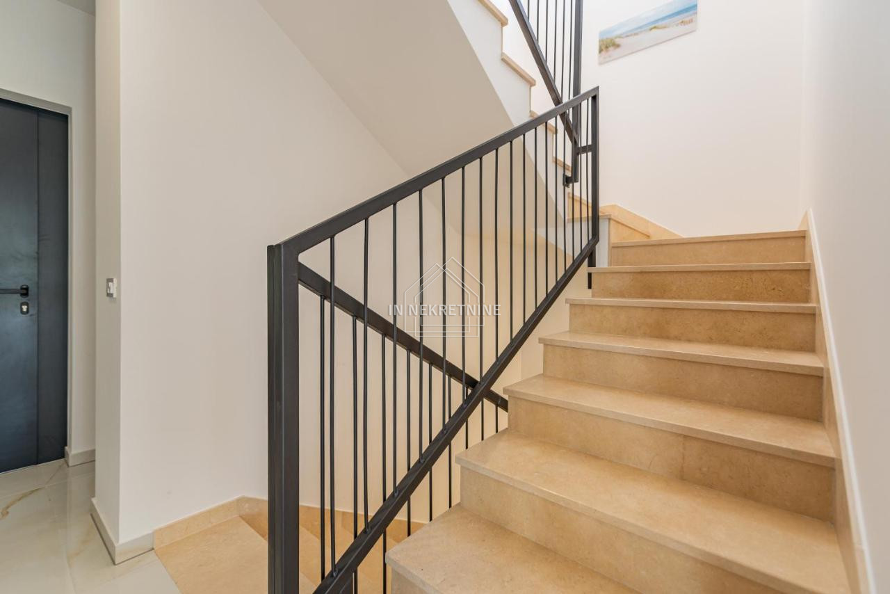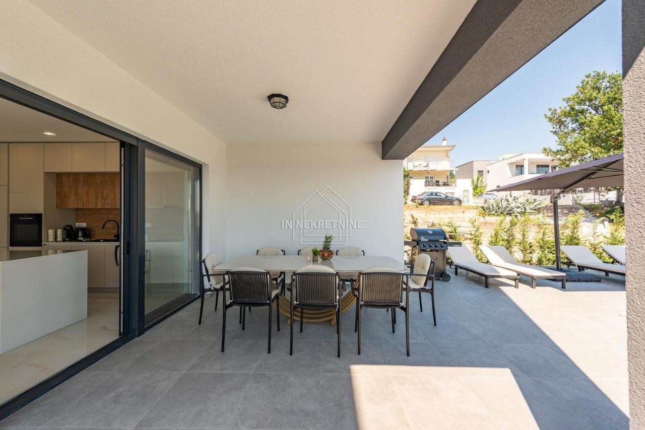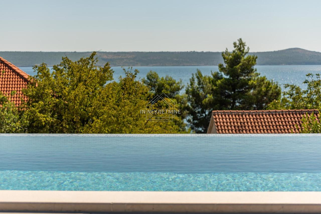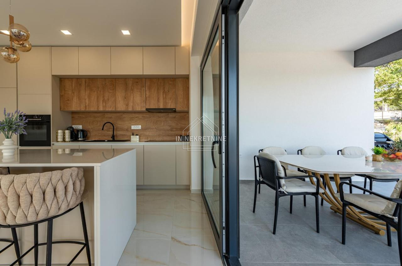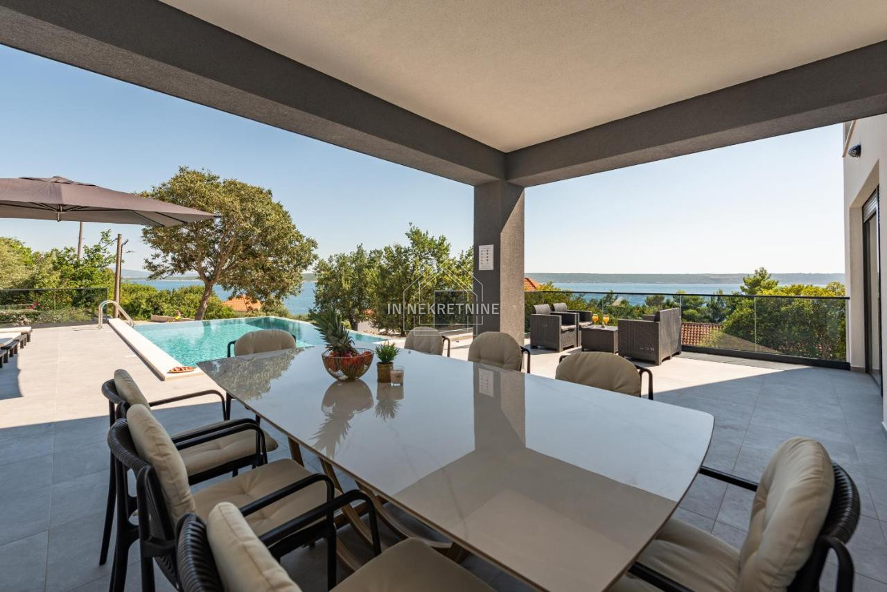 Na prodaju je novoizgrađena luksuzna vila s bazenom, površine 275 m², smještena na parceli od 526 m², na atraktivnoj lokaciji samo 70 metara od mora i plaže. Ova moderna vila ističe se vrhunskim dizajnom i spektakularnim pogledom na more iz gotovo svake prostorije.
