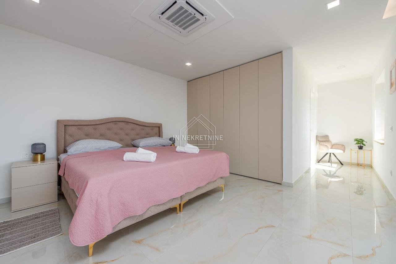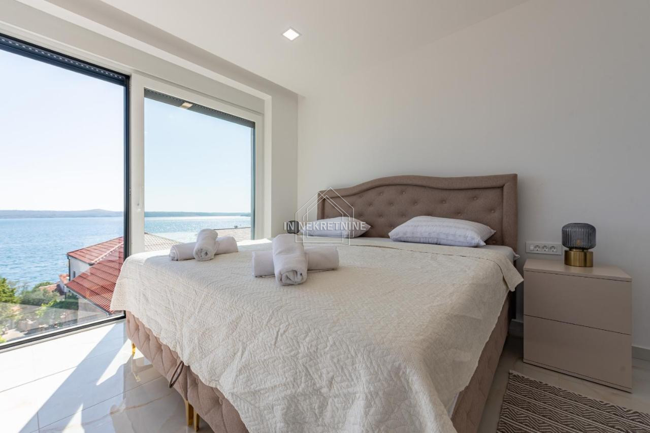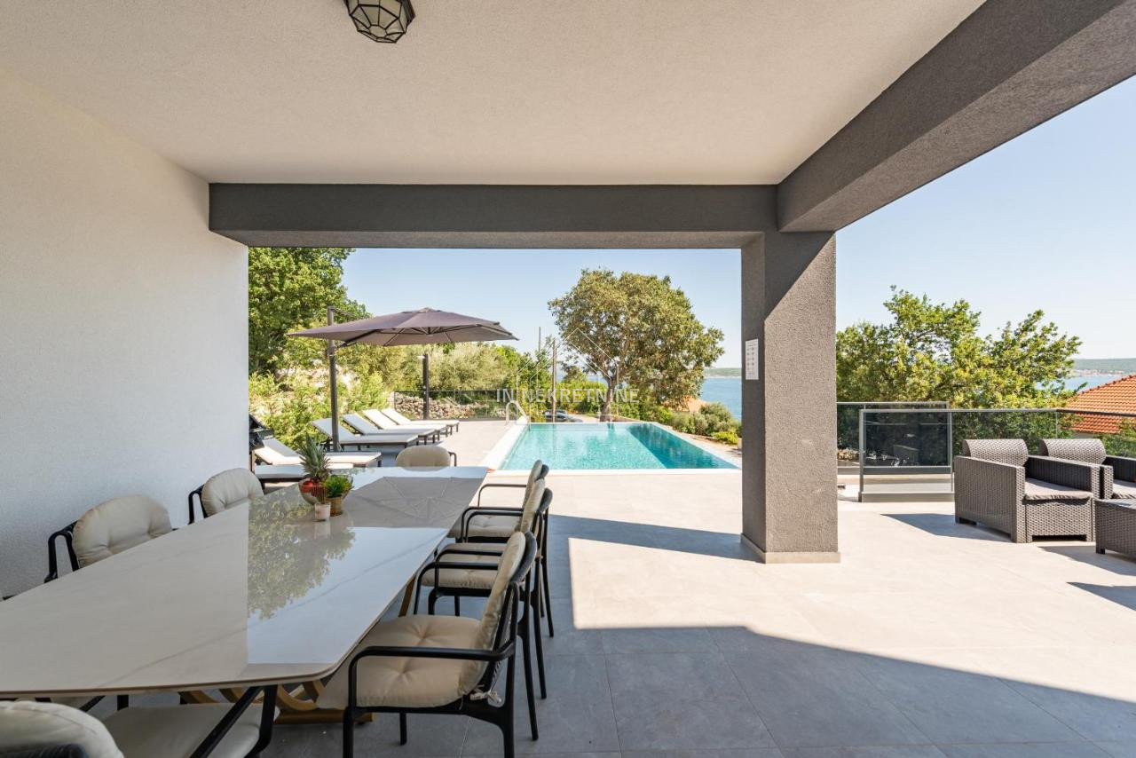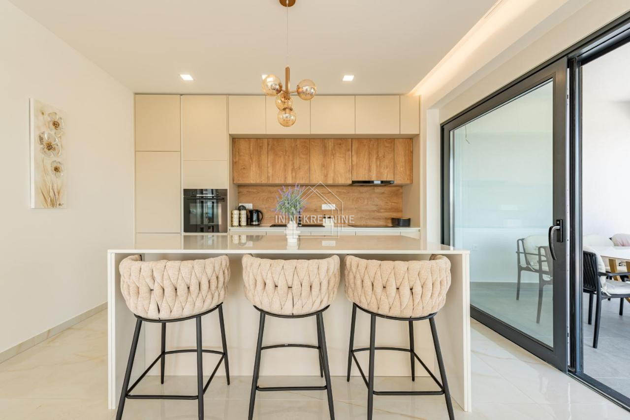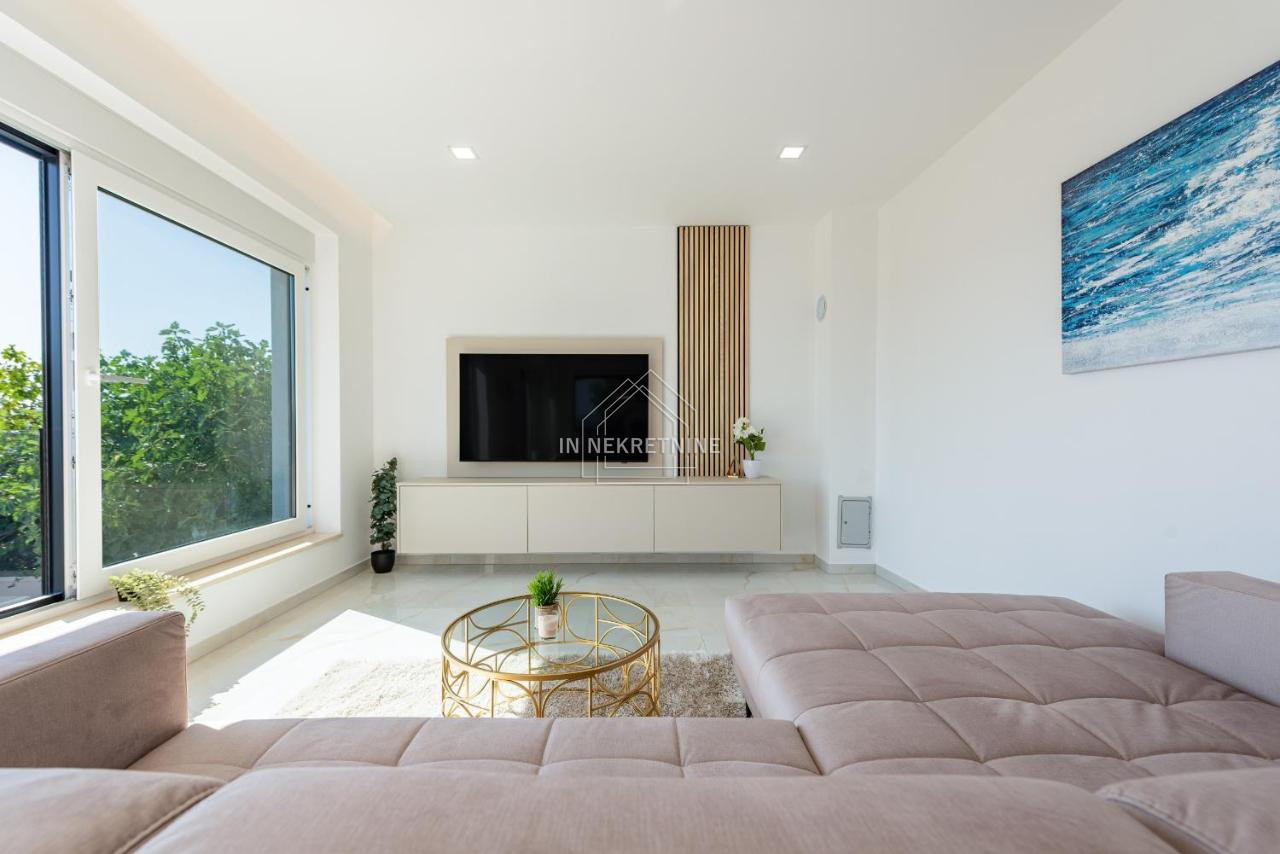 Na prodaju je novoizgrađena luksuzna vila s bazenom, površine 275 m², smještena na parceli od 526 m², na atraktivnoj lokaciji samo 70 metara od mora i plaže. Ova moderna vila ističe se vrhunskim dizajnom i spektakularnim pogledom na more iz gotovo svake prostorije.