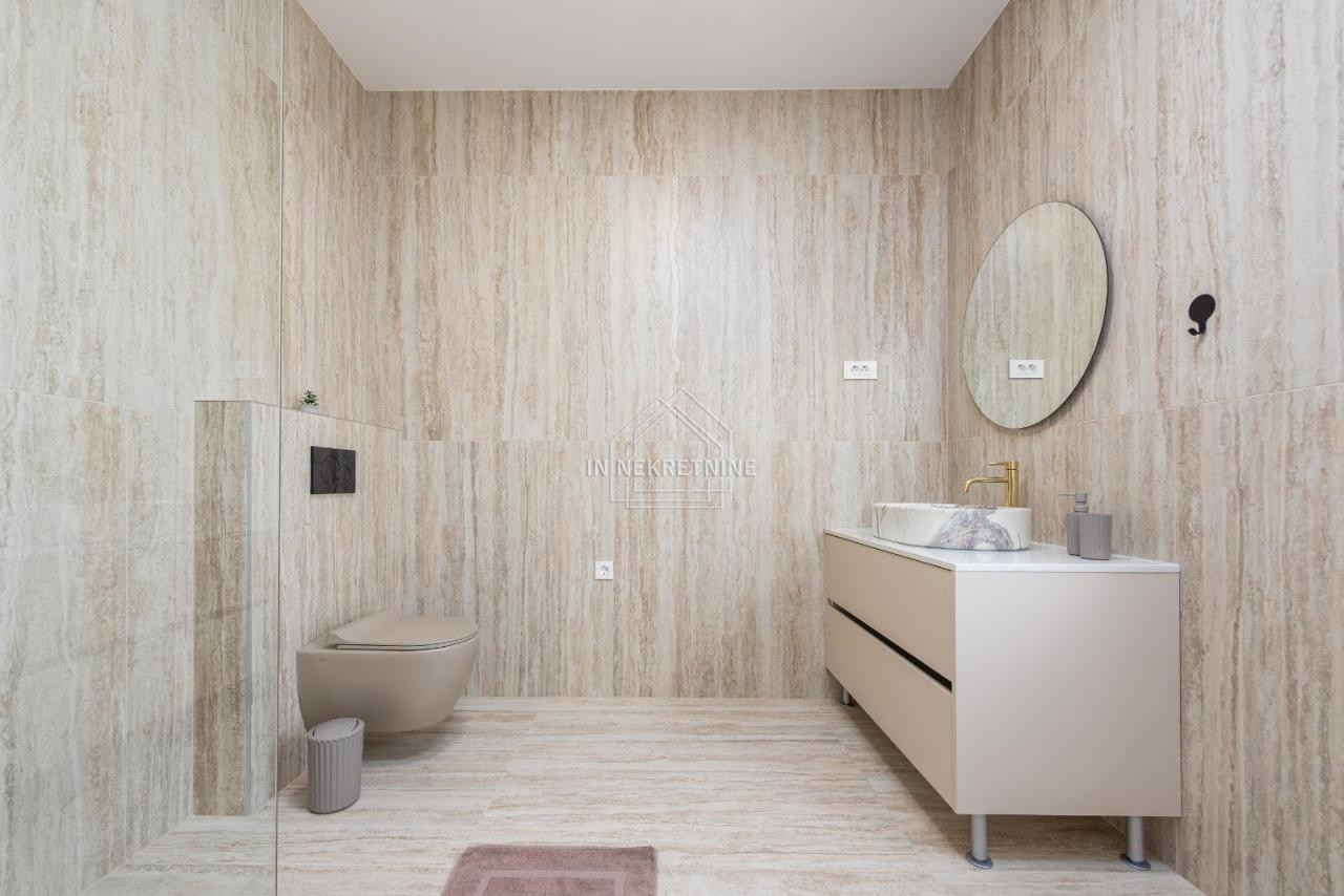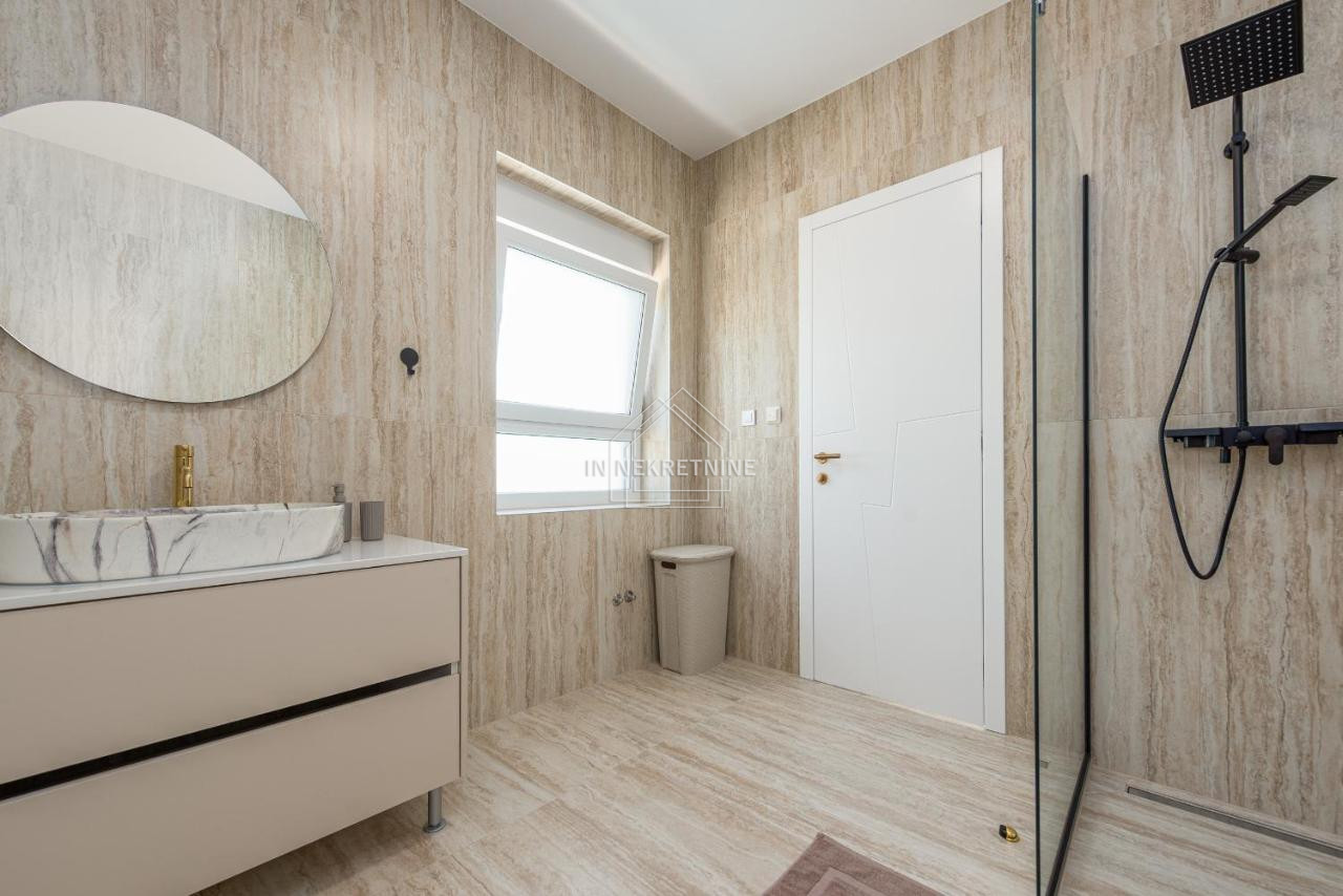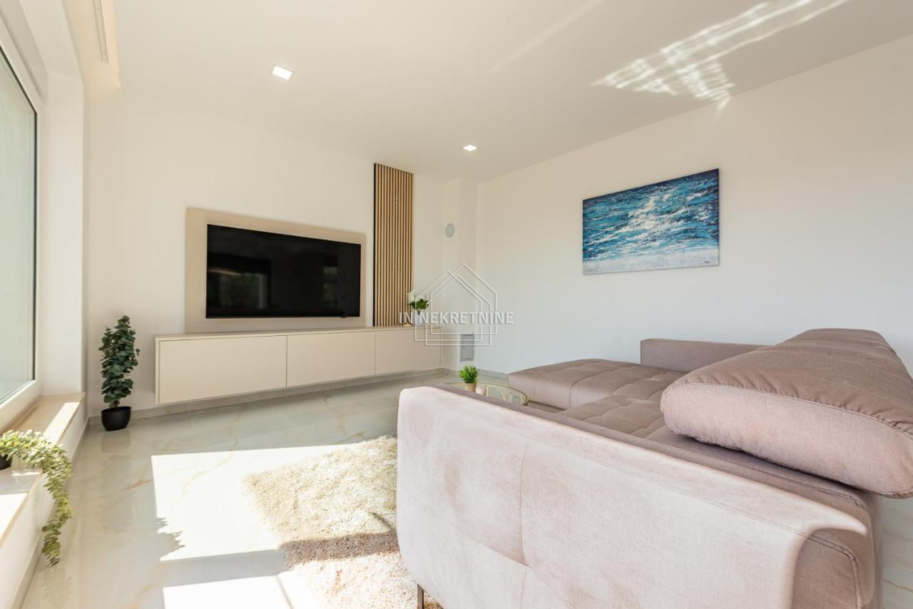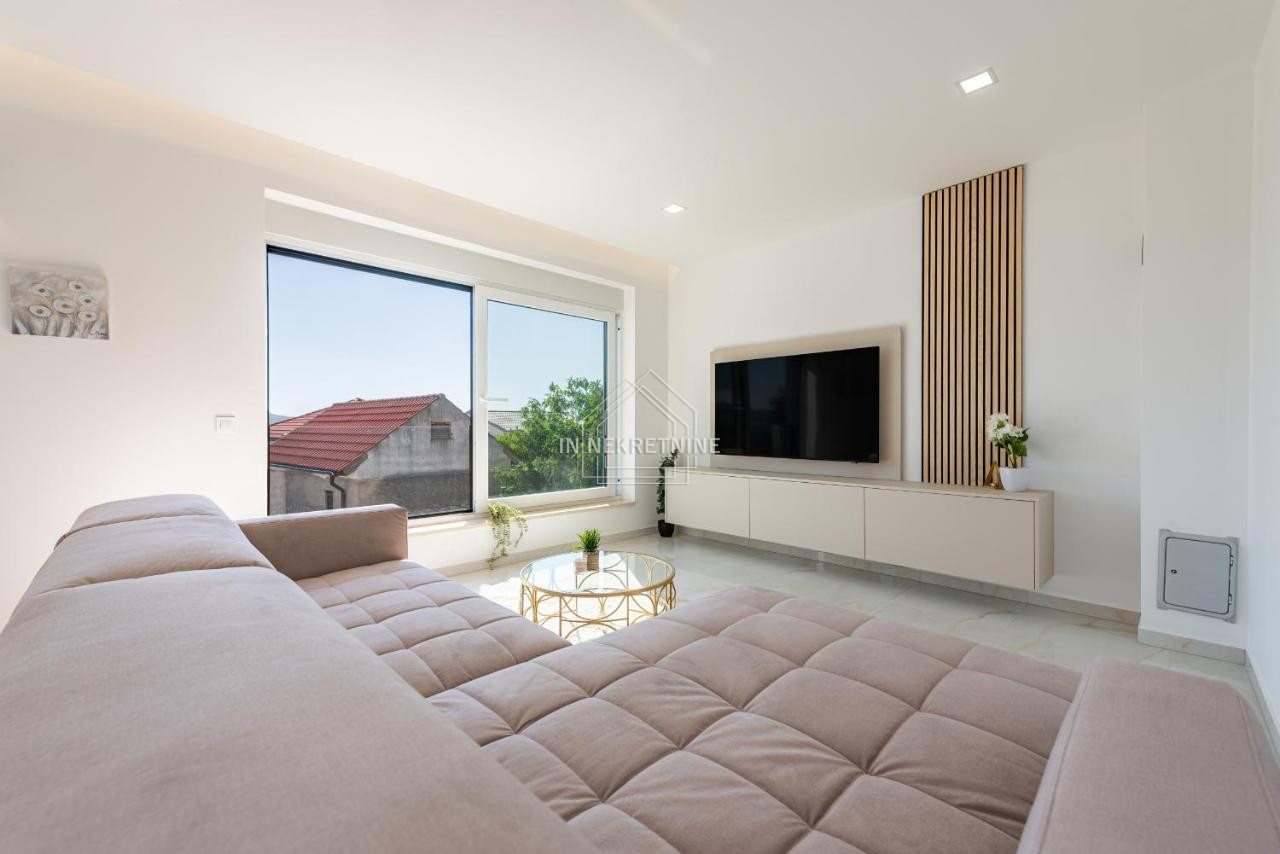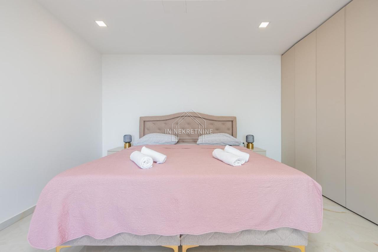 Na prodaju je novoizgrađena luksuzna vila s bazenom, površine 275 m², smještena na parceli od 526 m², na atraktivnoj lokaciji samo 70 metara od mora i plaže. Ova moderna vila ističe se vrhunskim dizajnom i spektakularnim pogledom na more iz gotovo svake prostorije.